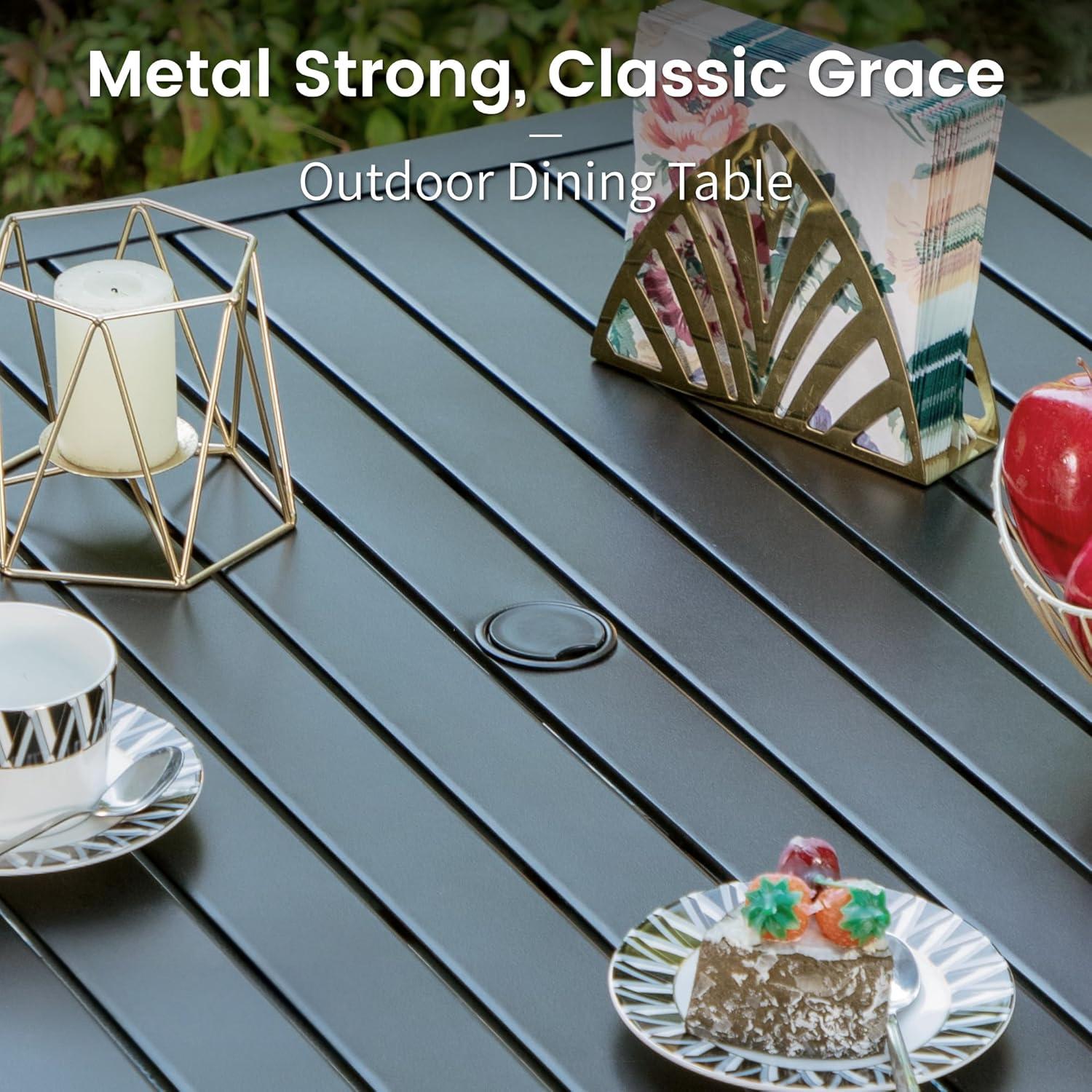 PHIVILLA 37 Inch Outdoor Dining Table Metal Steel Slat Square Patio Dining Table with 1.57" Umbrella Hole for Garden, Backyard and Porch (Classic Black)