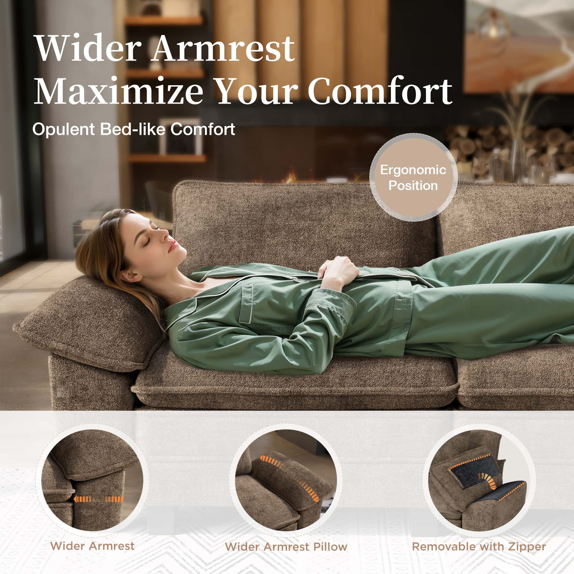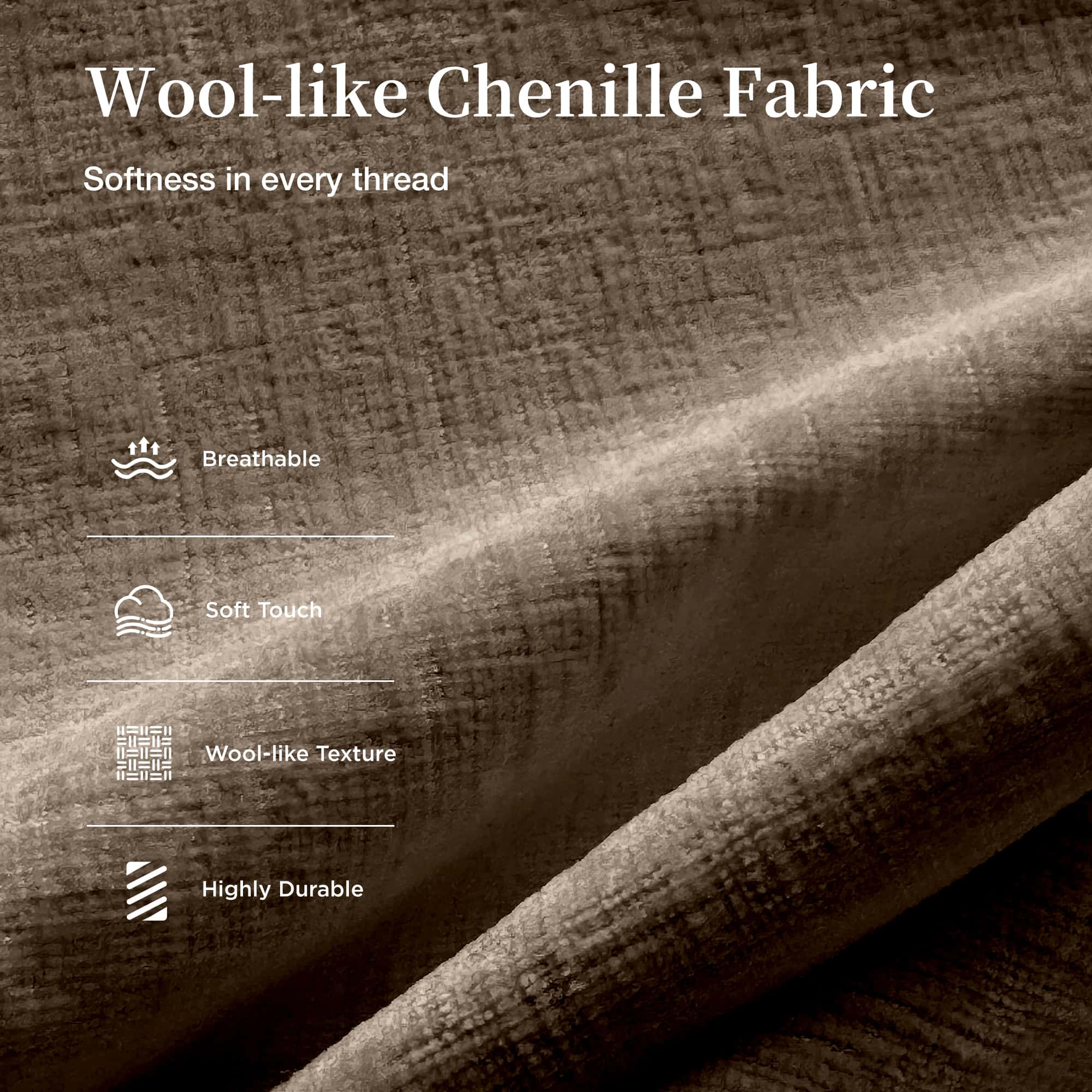 WOOL-LIKE CHENILLE FABRIC: This cloud sectional sofa is covered by premium wool-like chenille fabric that is luxuriously soft yet durable. It mimics wool's rich texture without the fuss, offers cloud-like comfort, perfect for households that want both elegance and everyday practicality