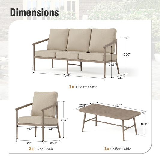 All Weather HDPE Outdoor Patio Furniture Conversation Set with Beige Cushions and Coffee Table