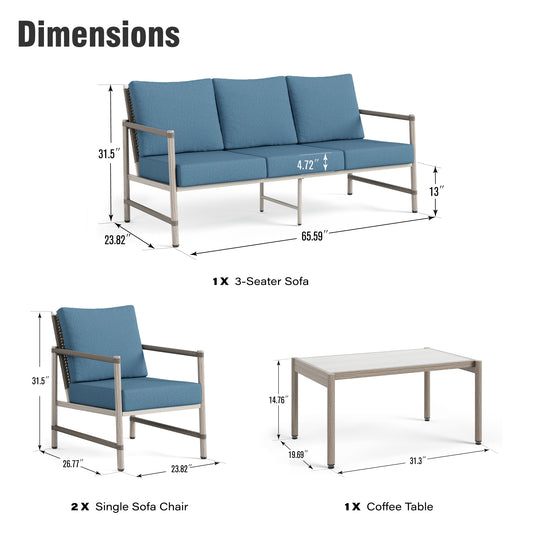 4 件套户外柳条露台会客套装,带咖啡桌,适合泳池边、后院