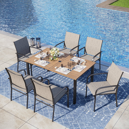 Captiva Designs 7 件套露台餐桌椅套装,配有 U 型腿木质长方形桌子和棕色吊带固定椅子
