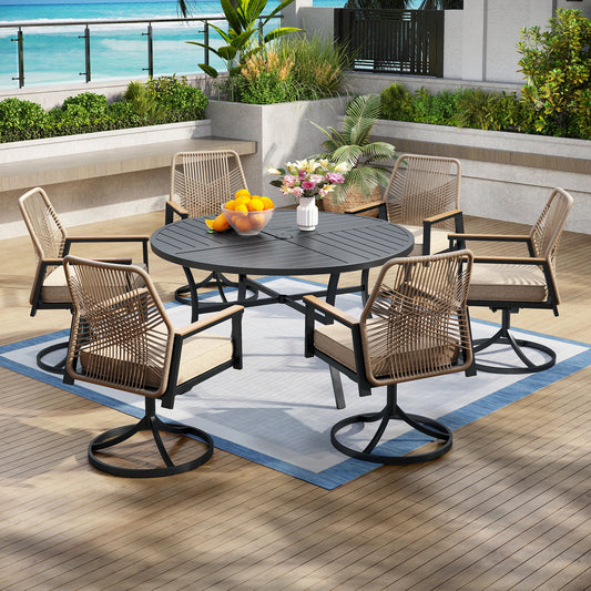 Captiva Designs 7 件套露台餐厅板顶可调节钢制长方形桌子和米色藤椅