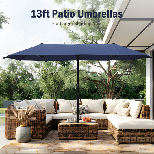Captiva Designs 13 英尺双面露台伞,大型矩形户外市场伞,海军蓝