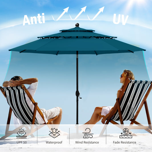 Captiva Designs 10ft Outdoor Patio Umbrella – Large 3-Tier Vented Umbrella with 8 Sturdy Ribs and 1.5" Pole (Base Not Included)