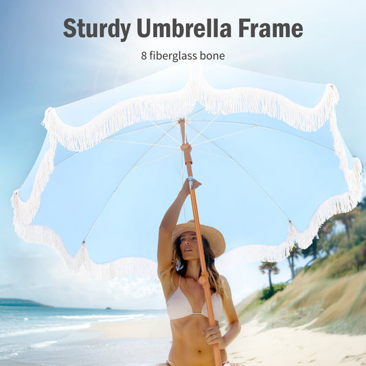 Captiva Designs 10 英尺通风露台遮阳伞,配有 8 根坚固伞骨,适用于草坪、泳池边和花园 - 米色