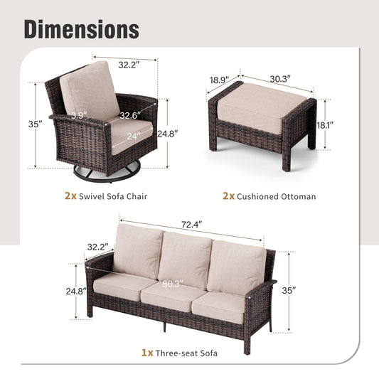 Captiva Designs 5 件套户外露台柳条会客套装,带软垫藤条旋转椅,适用于花园泳池边后院