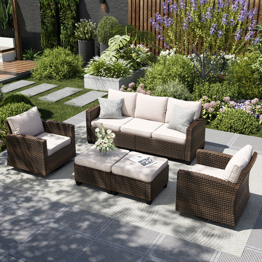 Captiva Designs 5 件套超大露台户外柳条家具会客沙发套装带脚凳适用于花园庭院门廊