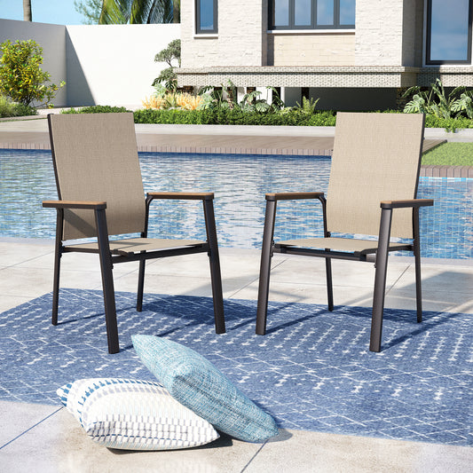 Captiva Designs 2 件套户外铝制餐厅椅,配有快干特斯林和仿木扶手