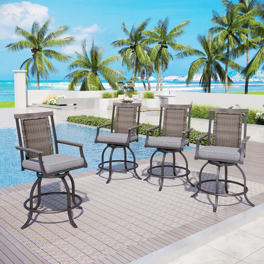 Captiva Designs 2 件式露台藤条靠背金属吧台旋转椅,带木质扶手和灰色加厚坐垫
