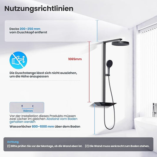 Alphabath Duscharmatur Komplettset Duschsystem mit Thermostat und Eingegossene Glasregale Duschset mit 30 cm Regendusche Duschkopf Regendusche mit Armatur, Grau