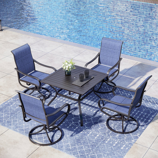 Captiva Designs 5 件套露台餐厅钢制方桌和蓝色 Textilene 360 度旋转椅