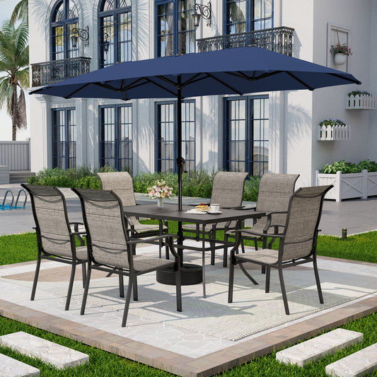 Captiva Designs 9 件套露台餐桌椅套装,配有宽敞的方形金属板桌和灰色 Textilene 固定椅子