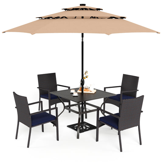 Captiva Designs 6pc Patio Mesh Top Square Steel Dining Table & Stackable Metal Chairs & Market Umbrella