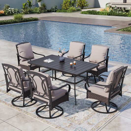 Captiva Designs 7 件套露台餐桌椅套装,配有带顶板的矩形桌子和藤制金属旋转扶手椅