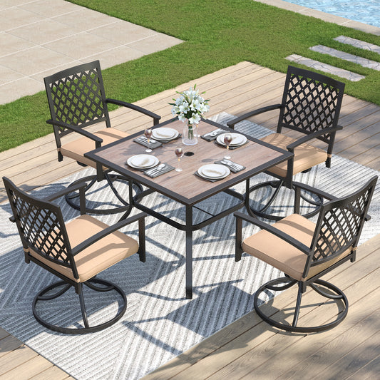 Captiva Designs 9 件套宽敞方形金属板顶桌,带伞孔和带衬垫的 Textilene 旋转椅