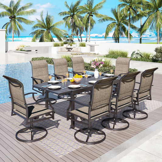 Captiva Designs 9 件套露台餐厅几何图案可伸缩钢制长方形桌子和 Textilene 旋转椅