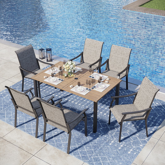 Captiva Designs 7 件套户外餐桌椅套装,配有带板顶的矩形桌子和高背藤制固定椅子