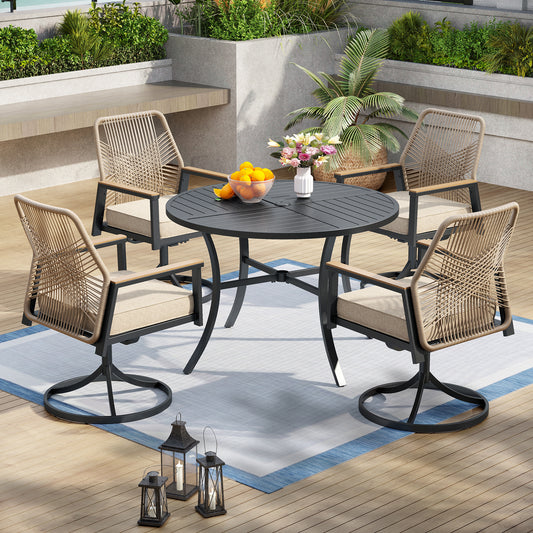 Captiva Designs 5 件套户外餐桌椅套装,配有方形高脚吧台桌和加固底座 Textilene 旋转吧台凳