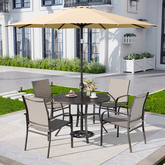 Captiva Designs 6pc Patio Dining Set Steel Table & Light Brown Sling Chairs & Beige Umbrella