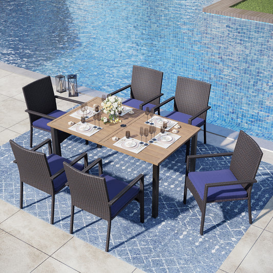 Captiva Designs 7 件套露台餐桌椅套装,配有带顶板的矩形桌子和时尚的固定扶手椅
