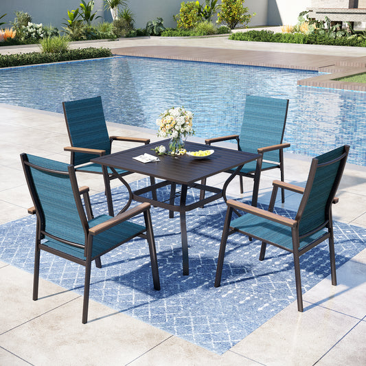 Captiva Designs 5 件套露台餐厅钢制方桌和米色特斯林椅子,配有仿木扶手