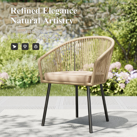 Captiva Designs 4pc Outdoor Patio Woven Pull Cord Back Dining Chairs with Seat Cushion