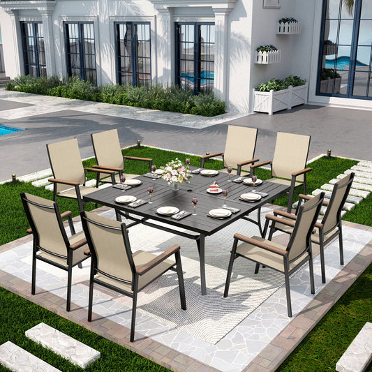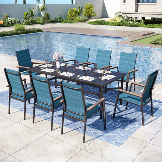 Captiva Designs 9 件套露台餐桌椅套装,配有可调节钢制长方形餐桌和 Textilene 铝制椅子