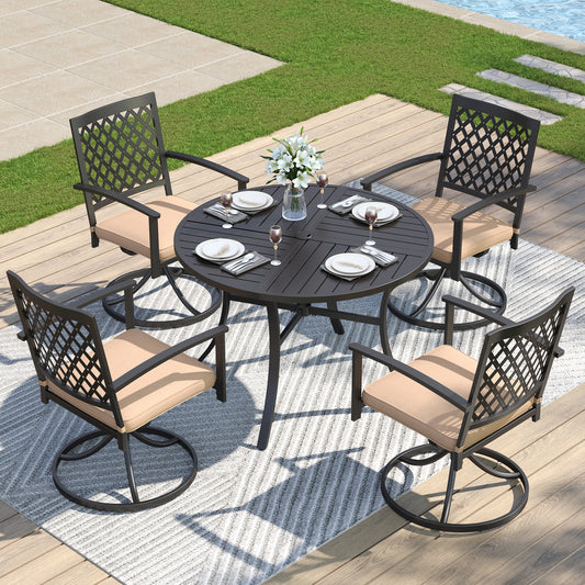 Captiva Designs 5 件套露台餐厅钢制套装,配有带顶板的圆桌和可叠放的椅子,带有网格图案