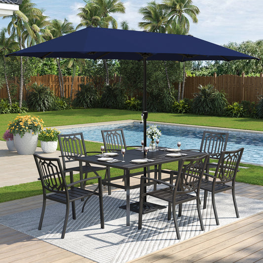 Captiva Designs 9 件宽敞方形金属板顶桌,带伞孔和时尚金属扶手椅