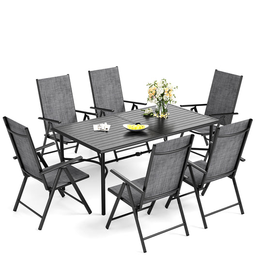 Captiva Designs 7 件套露台餐桌椅套装,配有带顶板的矩形桌子和黑色 Textilene 可躺折叠椅