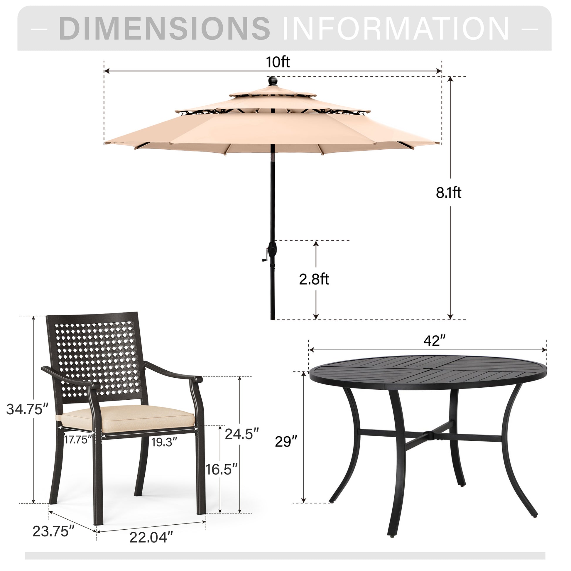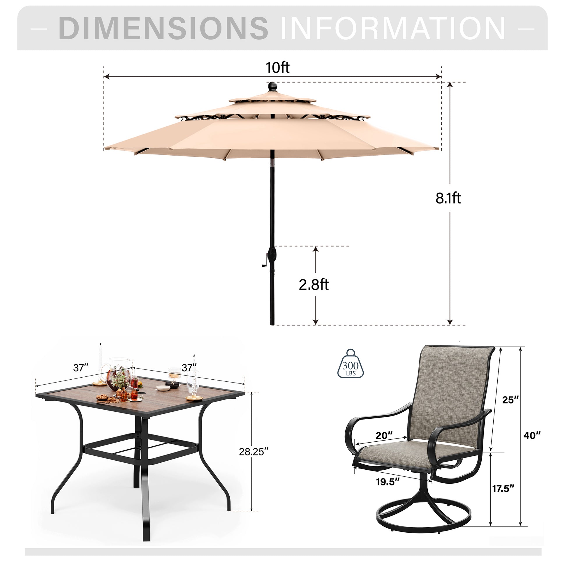 - Umbrella Dimensions: 10 Feet [Dia] x 10 Feet [L] x 10 Feet [W]