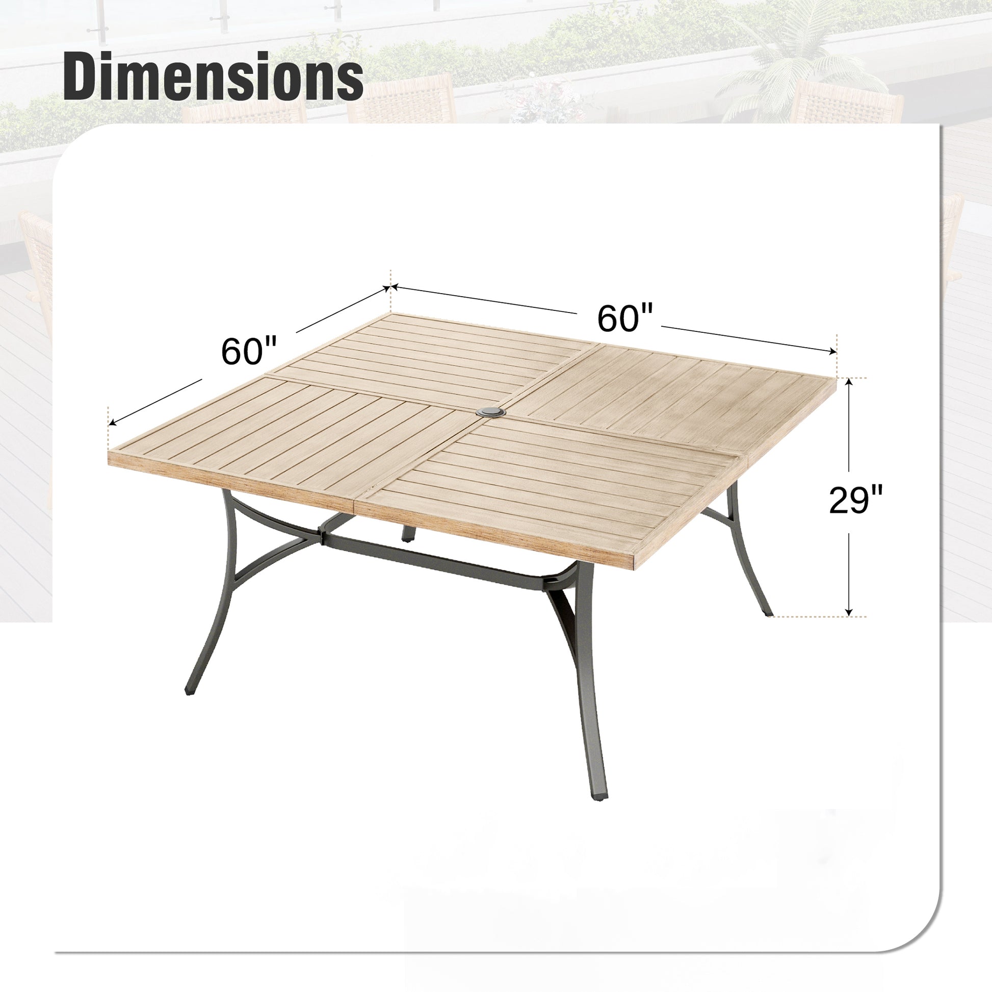 <b>宽大的金属餐桌:</b>宽敞的 60" x 60" 方形金属桌提供了充足的用餐空间。