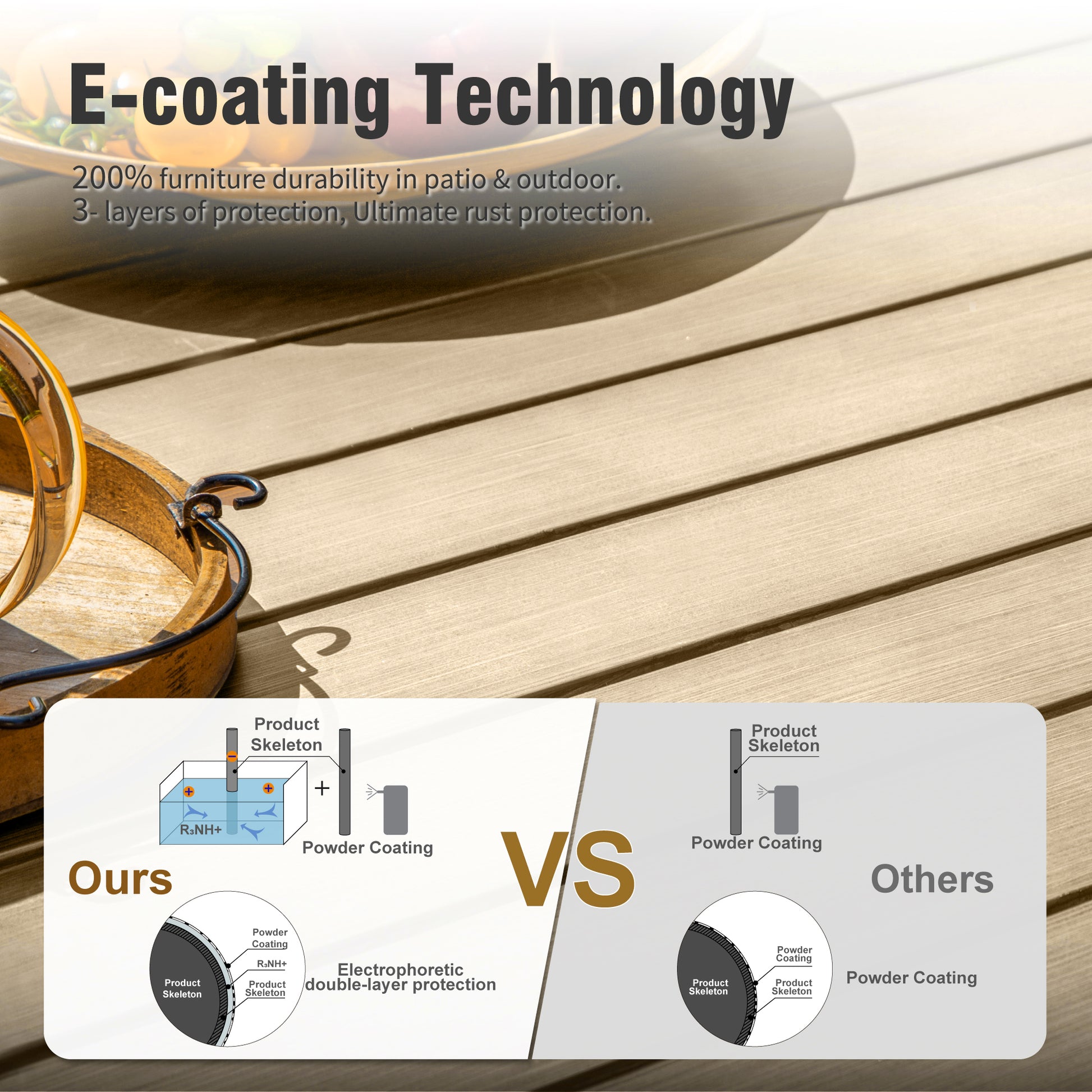 <b>坚固耐用的结构:</b>该套装采用电子涂层和粉末涂层钢框架制成,旨在承受户外条件,确保持久的享受。