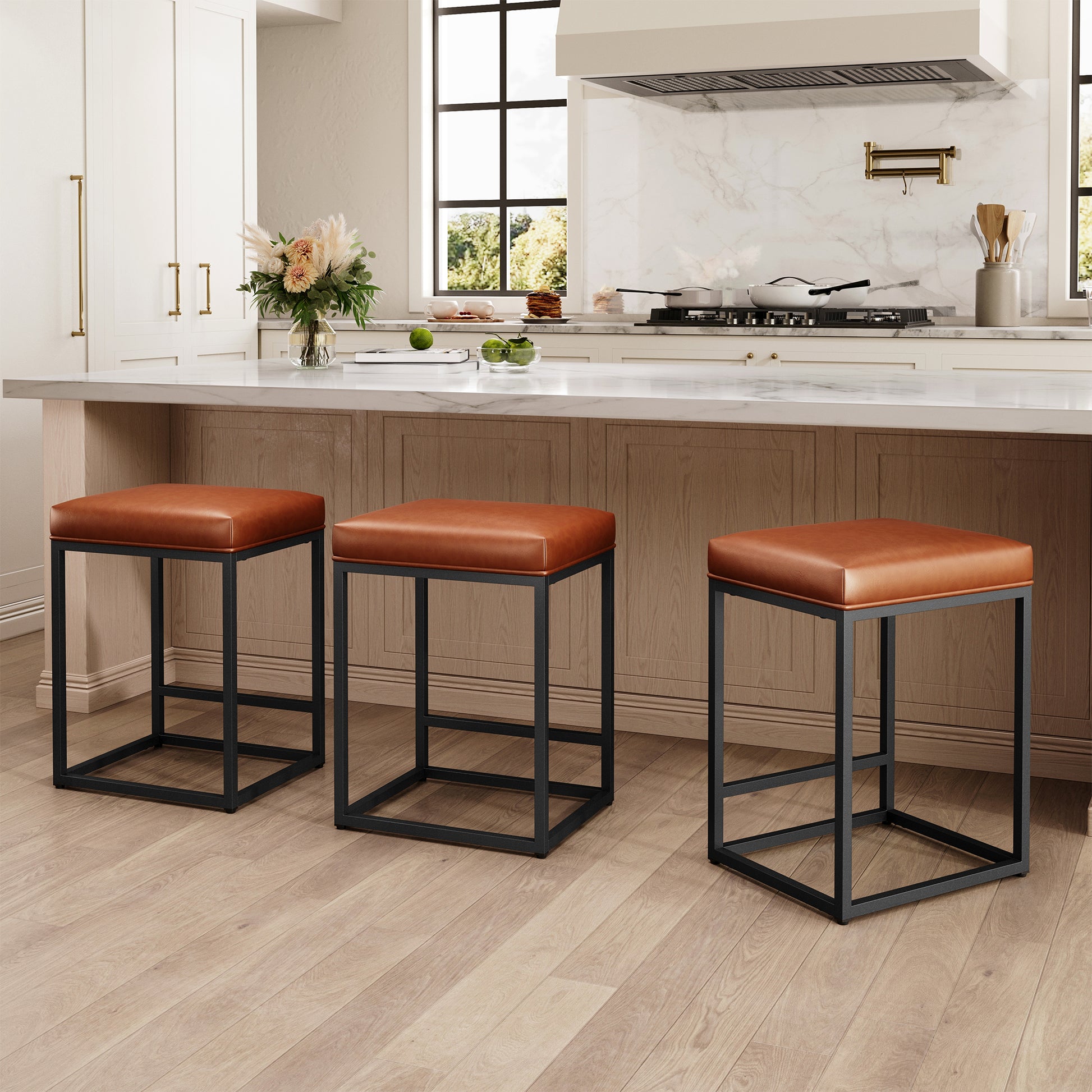 Captiva Designs 24 inch Counter Height Bar Stool with Faux Leather Cushion and Sturdy Metal Frame
