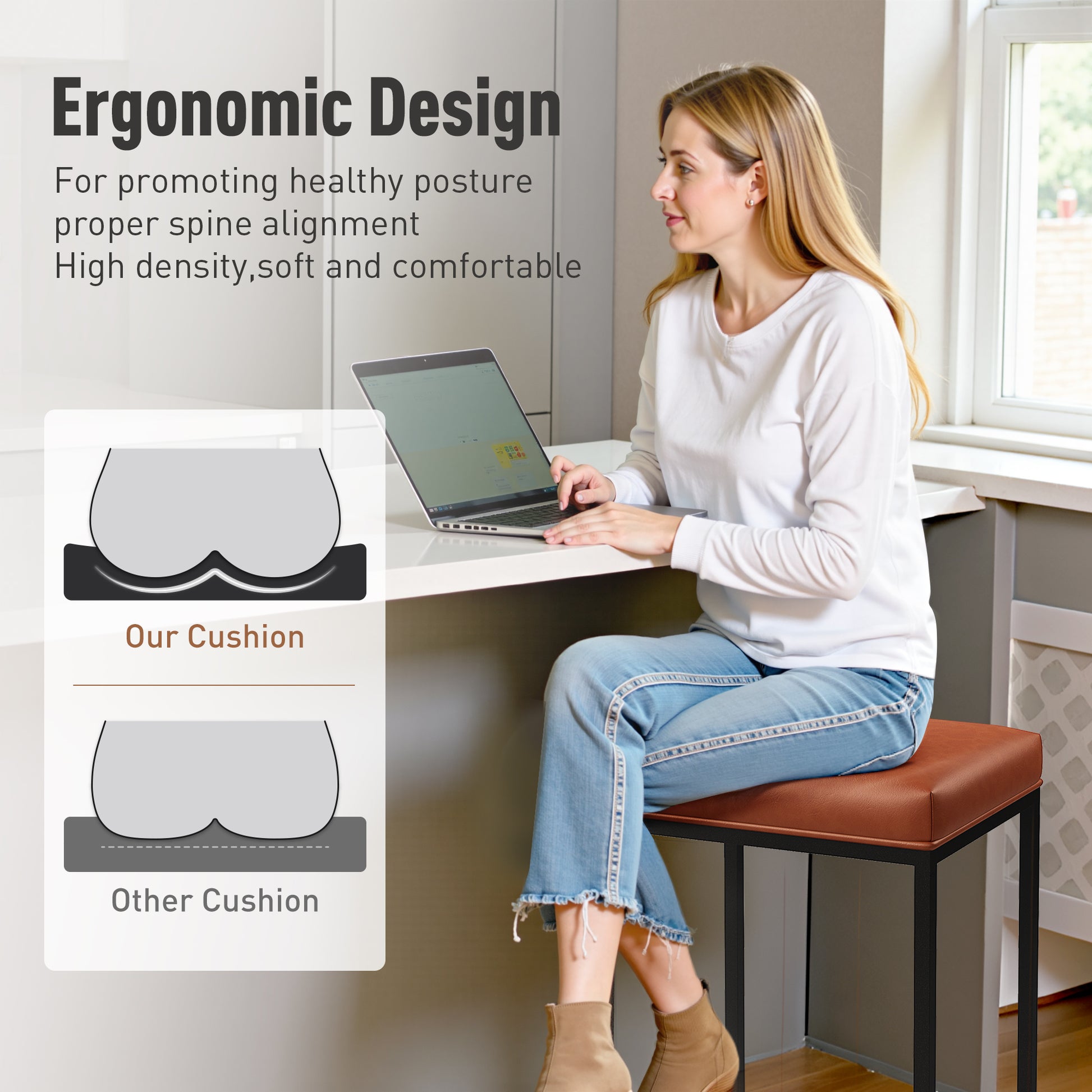 [Captiva Designs] Upgrade your space with Captiva Designs' 24-inch counter-height bar stool, combining durability and comfort for daily use. Its premium faux leather cushion is waterproof, stain-resistant, and easy to clean, while the four-layer comfort system (synthetic leather, high-resilience foam, elastic band, and reinforced lining) ensures lasting support. The ergonomic high-density cushion promotes proper posture, and the corrosion-resistant metal frame supports up to 300 lbs. Designed for convenience, it features non-slip pads, a footrest, and quick 10-minute assembly. Perfect for counters (34–38" height), its sleek style fits modern interiors. A stylish, sturdy, and effortless choice for your home!