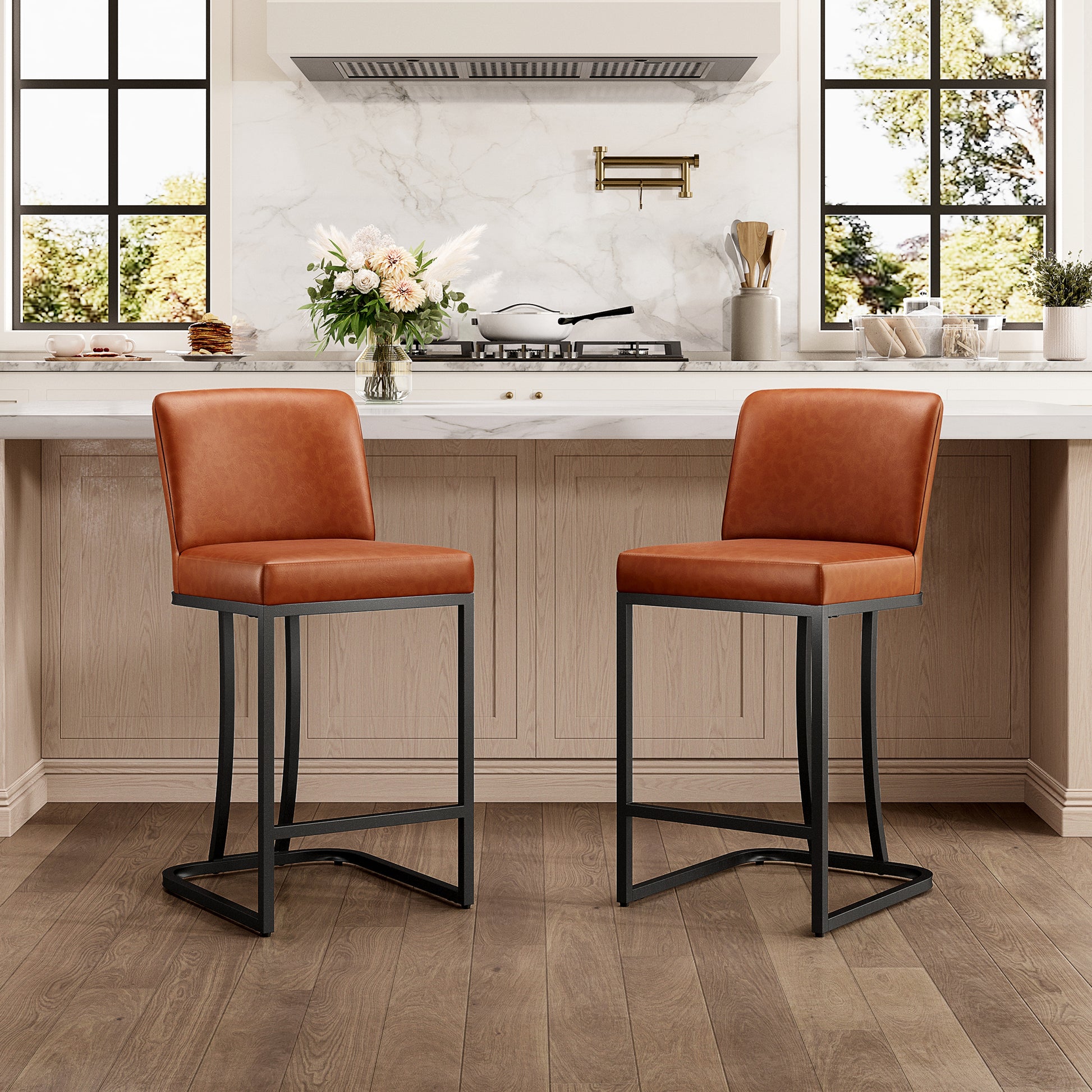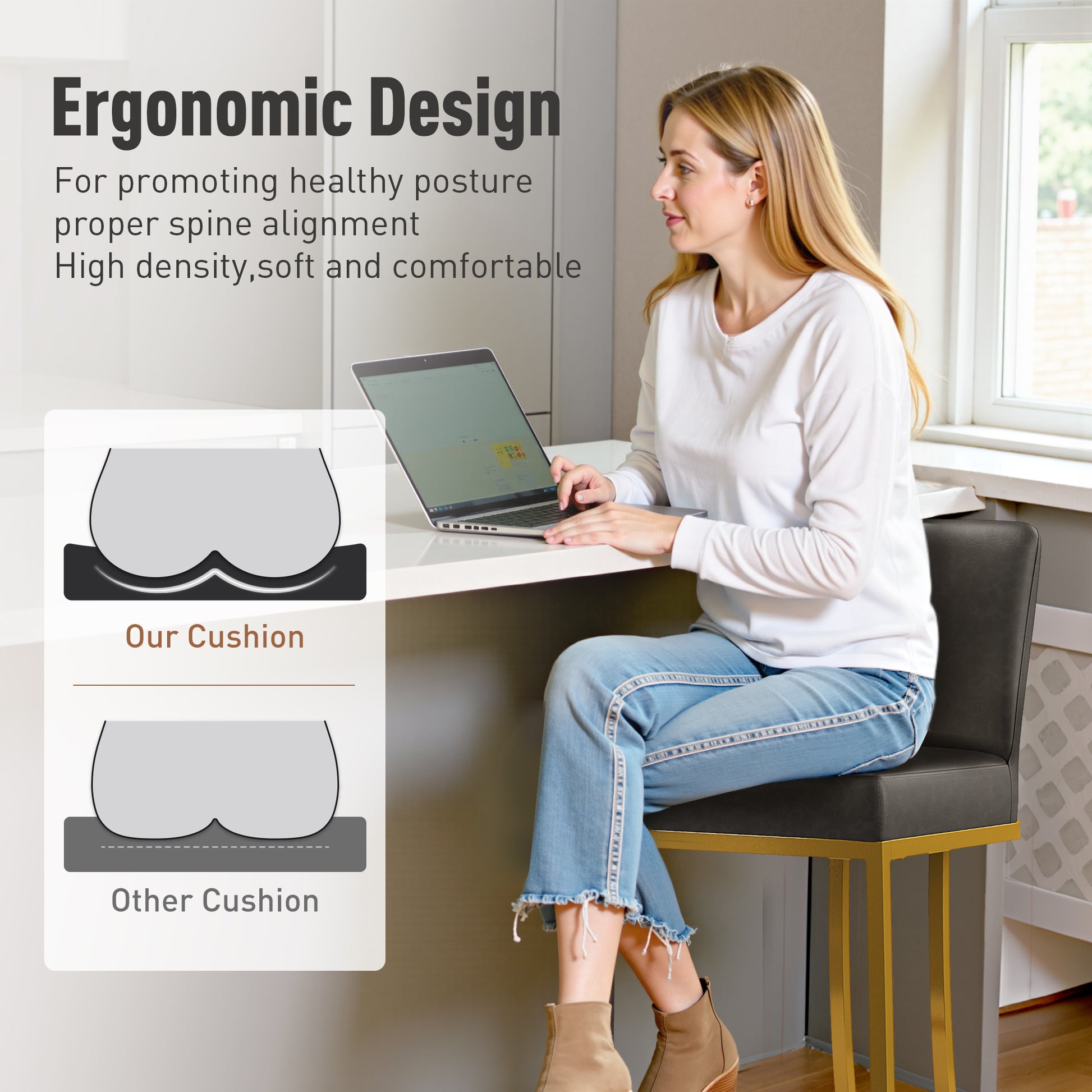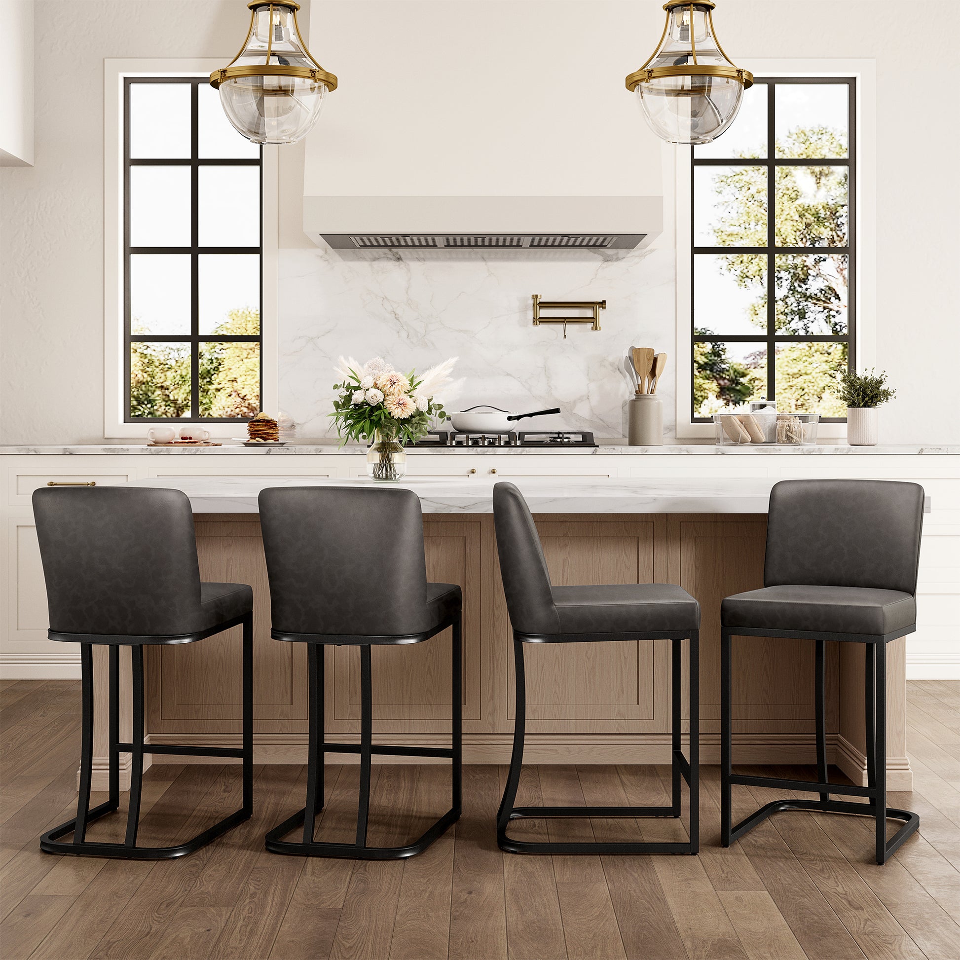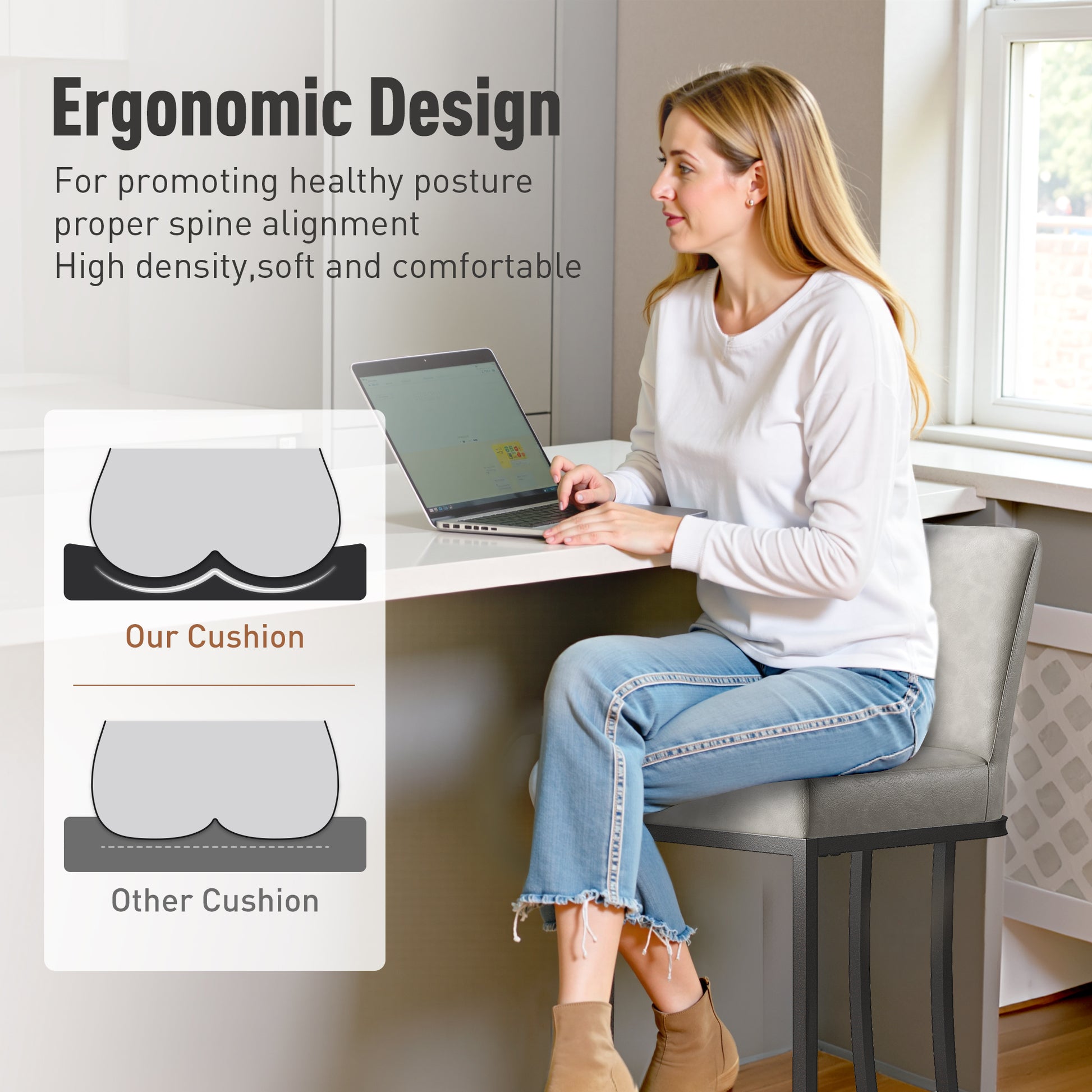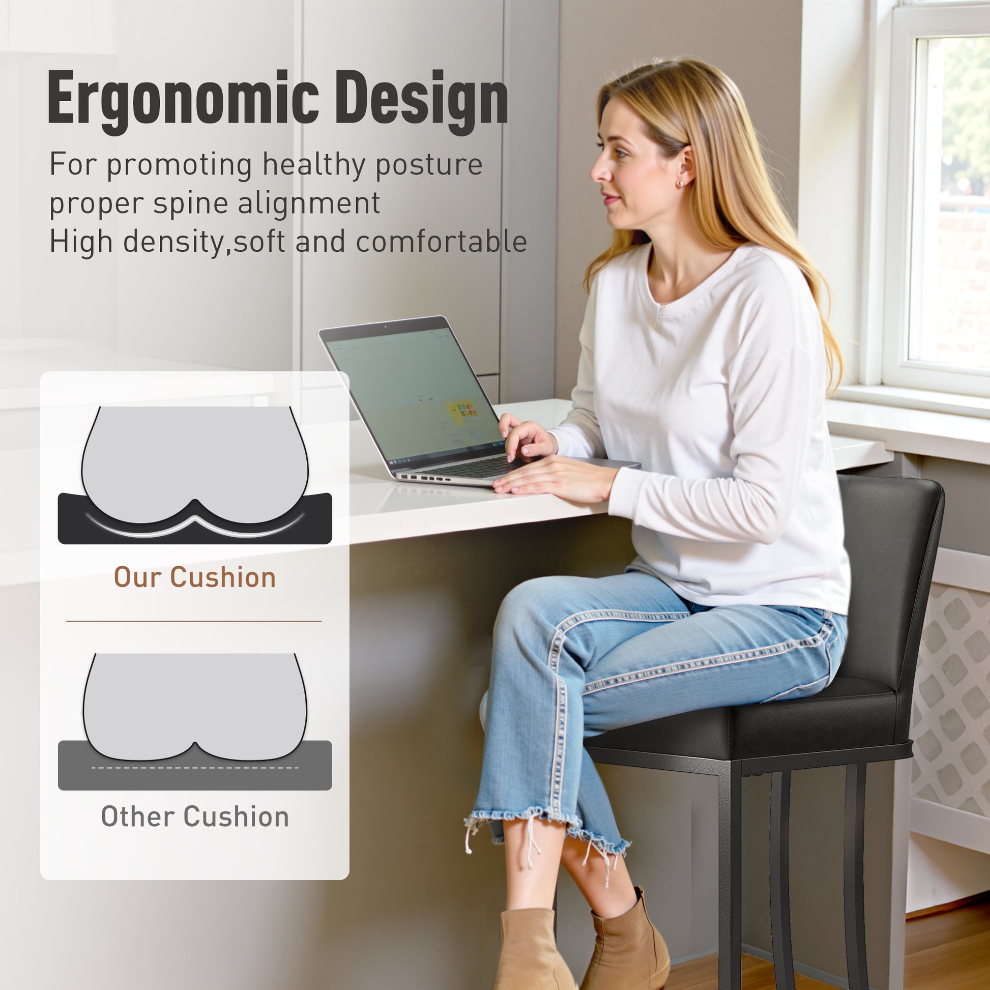 [Captiva Designs] The Captiva Designs 24" bar stool combines premium faux leather with a pull-up effect for a luxe, natural leather look, paired with four-layer comfort (high-resilience foam, elastic band & smooth lining) for all-day support. Its wide ergonomic backrest and 24.4" seat height (fits 34–38" counters) ensure ideal posture, while the corrosion-resistant steel frame and non-slip base guarantee durability and floor protection. With hassle-free assembly and a sleek, space-saving design (35.42"H × 14.8"W), this stool balances style and function—the perfect upgrade for kitchens, bars, or casual dining.