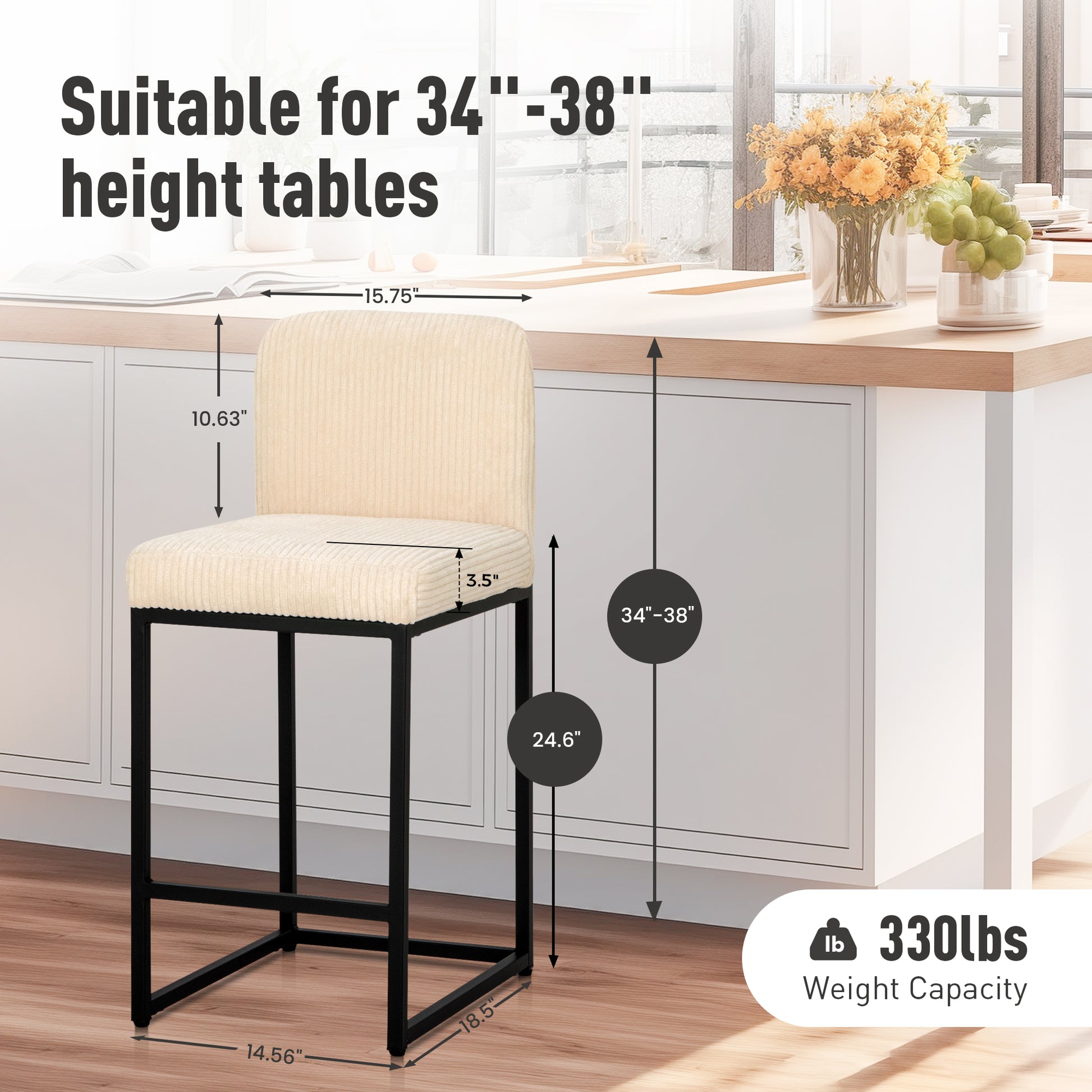 Captiva Designs 24 inch Height Bar Stool with Padded Seat and Back & Sturdy Steel Frame & Footrest