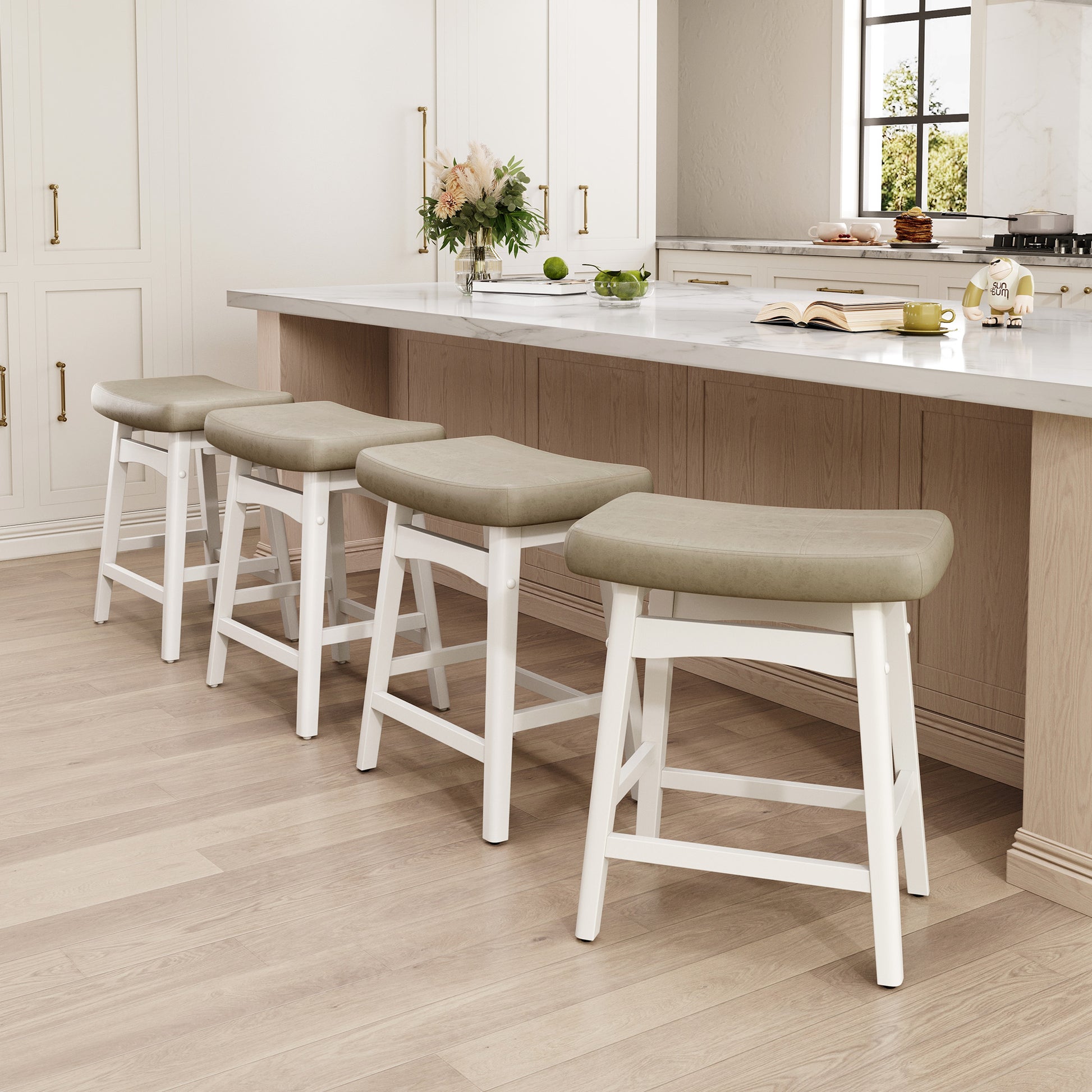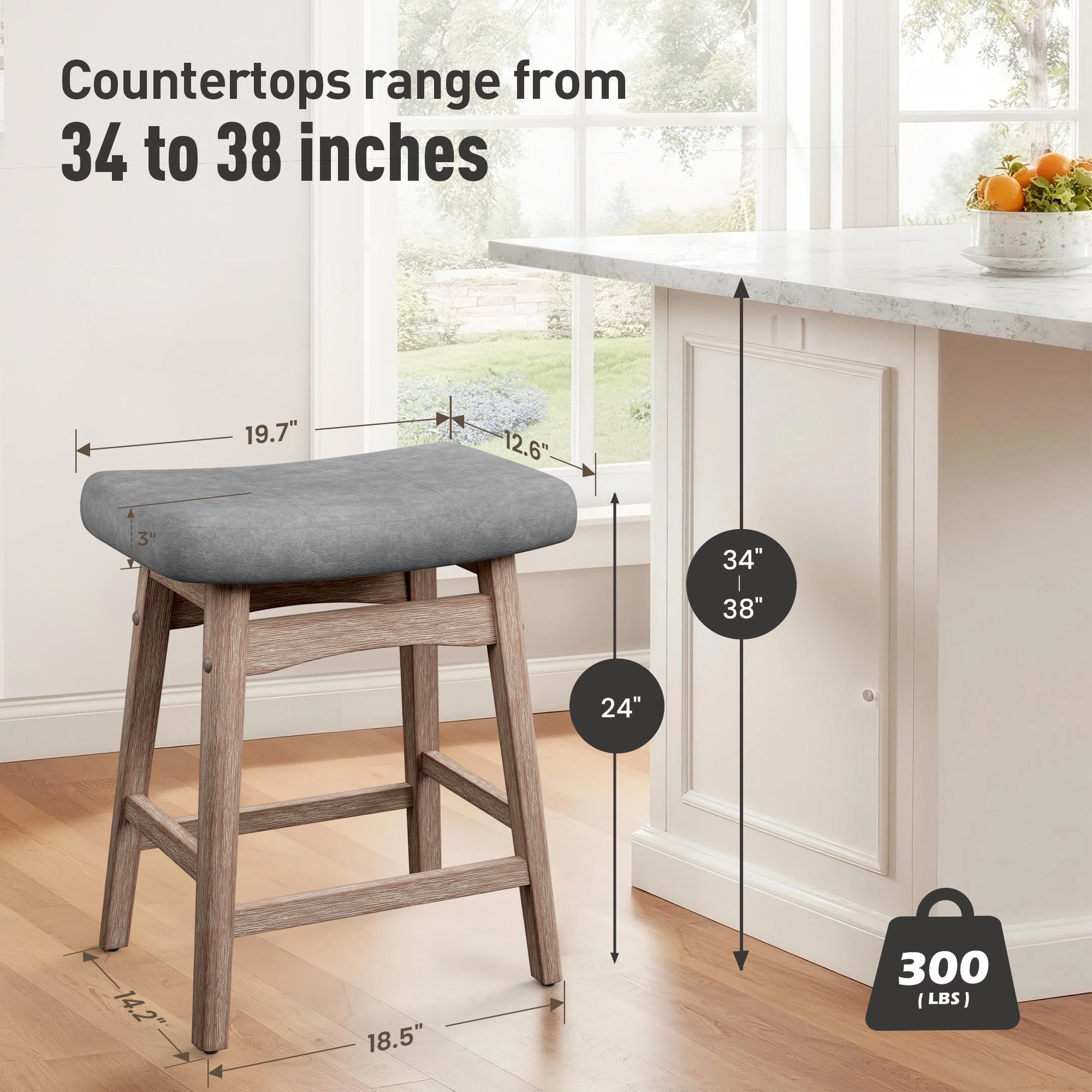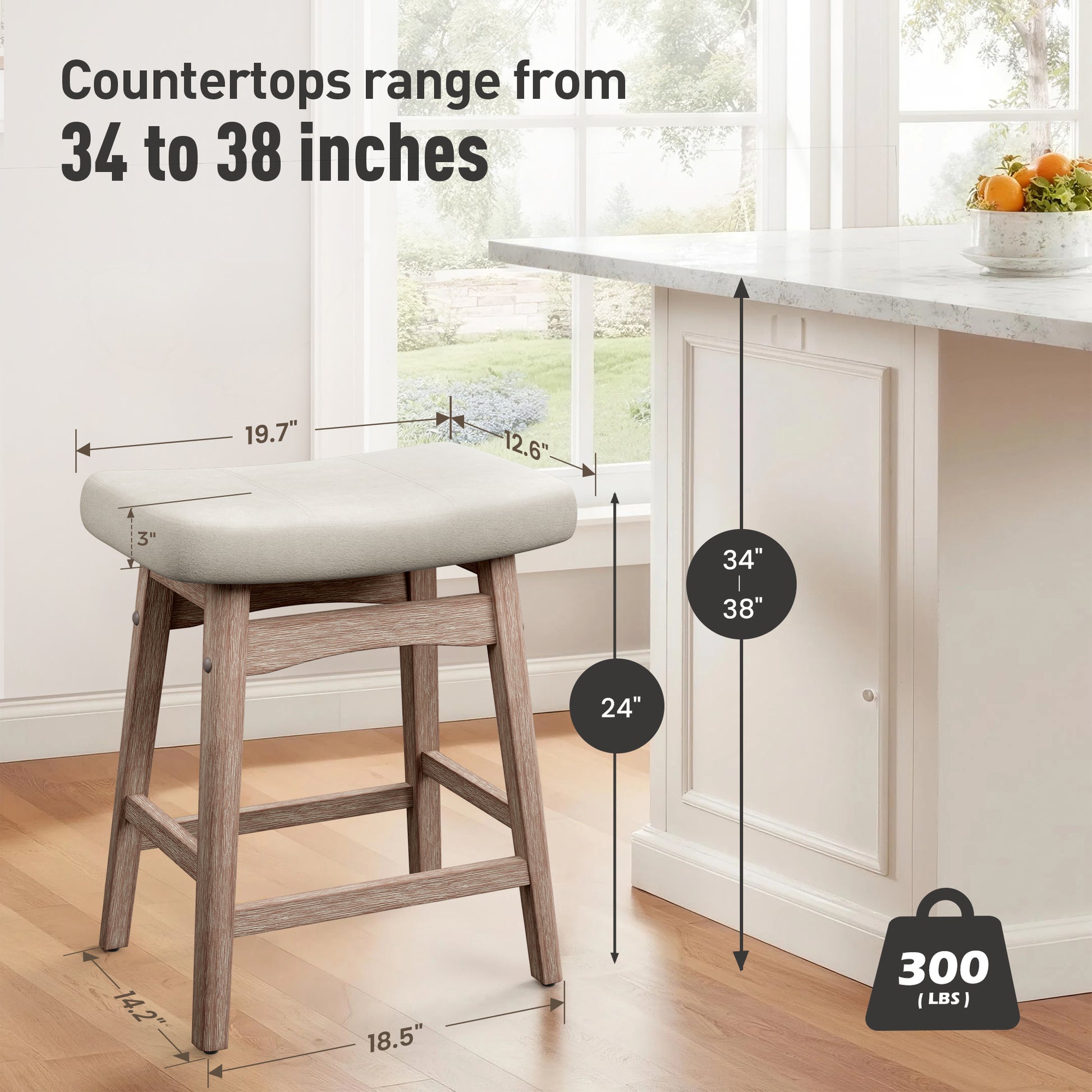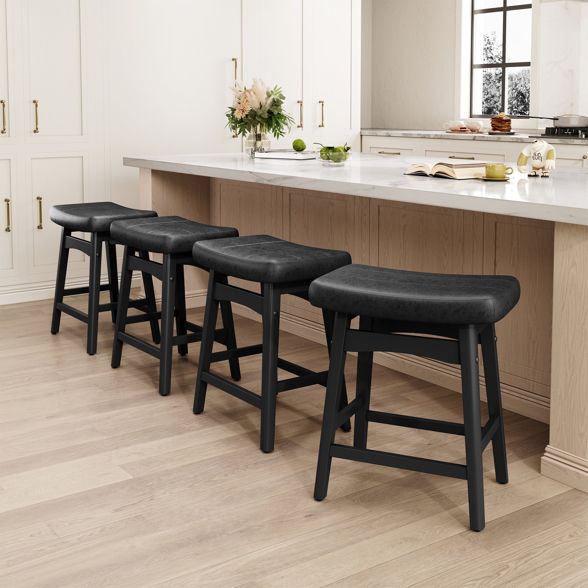 [Captiva Designs] Designed for lasting comfort, the Captiva Designs 24-inch bar stool features a four-layer seat system—synthetic leather, high-resilience foam, elastic band, and reinforced lining—for optimal support. Its sturdy solid wood frame ensures durability, while the contoured seat promotes ergonomic posture to reduce fatigue. The integrated footrest and non-slip pads add thoughtful convenience, protecting floors and enhancing stability. With compact dimensions, it fits standard 34–38" counters perfectly. Assembles in just 10 minutes—ready to elevate your kitchen or bar with timeless style and unmatched comfort. The ideal blend of function and elegance for your home.