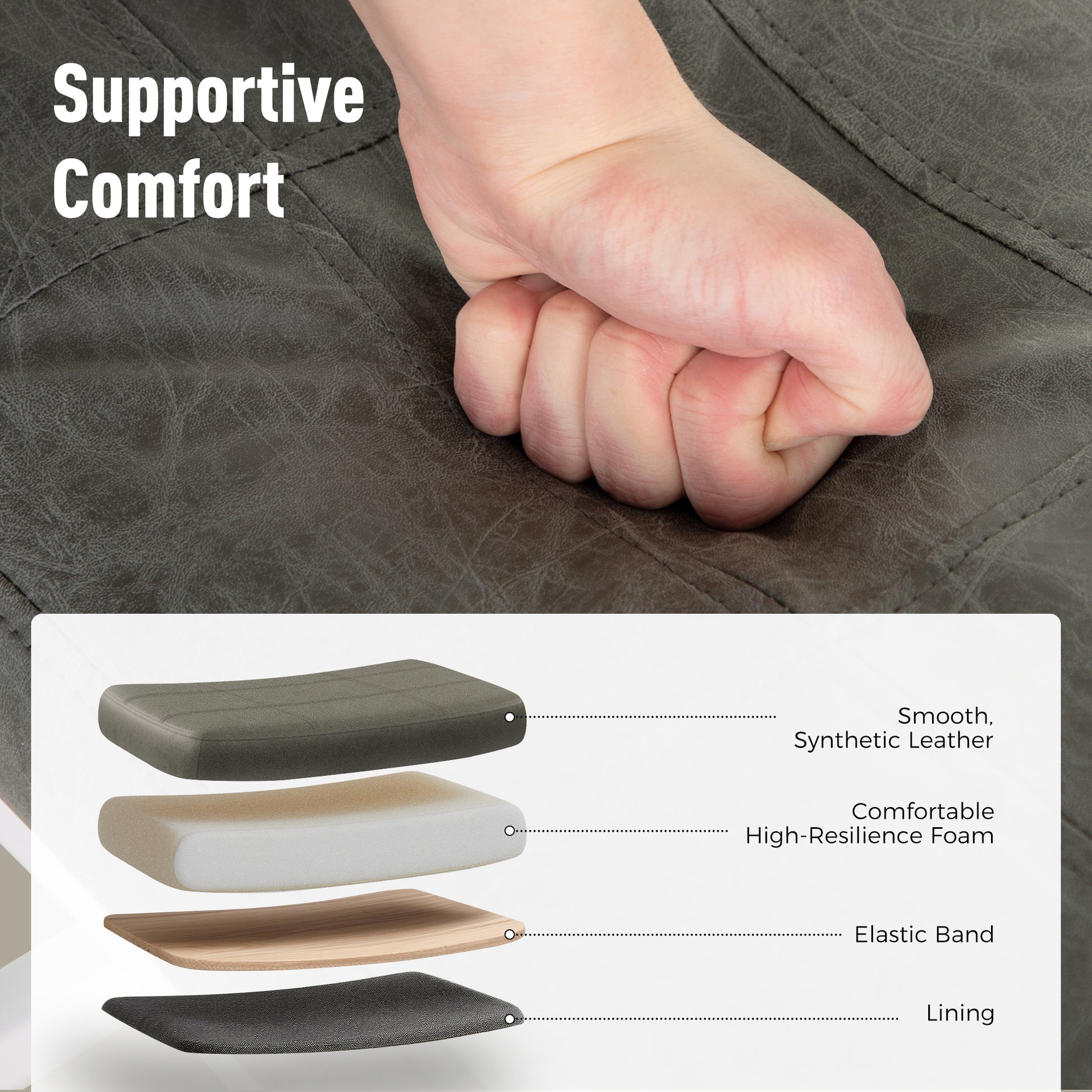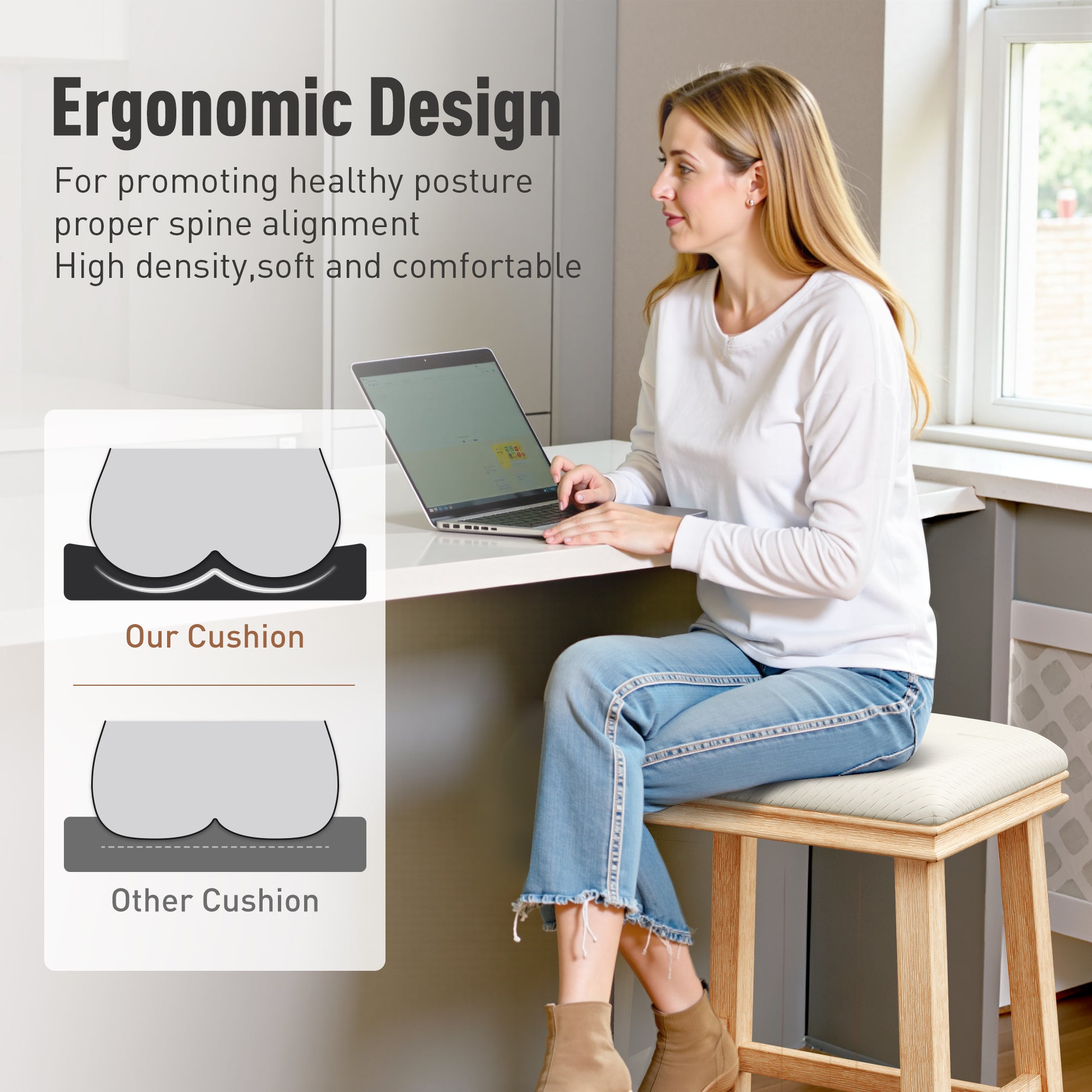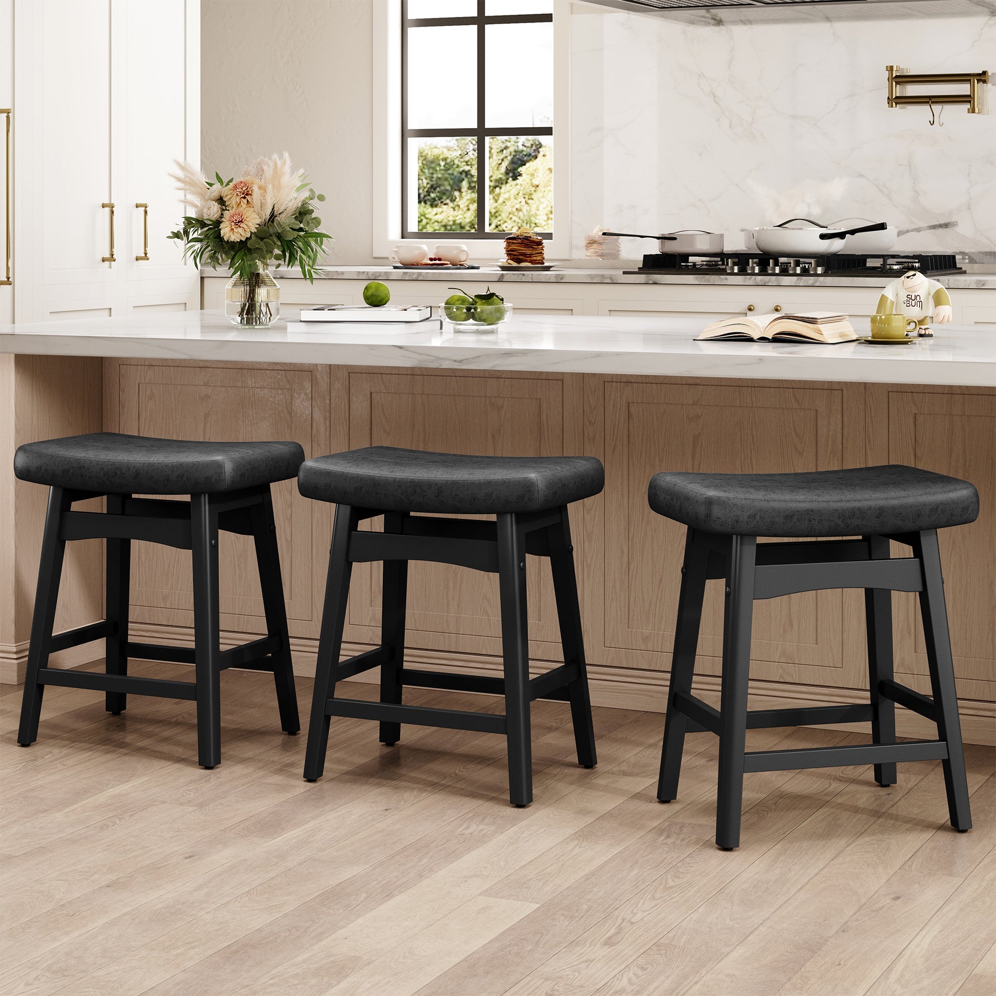 [Captiva Designs] Designed for lasting comfort, the Captiva Designs 24-inch bar stool features a four-layer seat system—synthetic leather, high-resilience foam, elastic band, and reinforced lining—for optimal support. Its sturdy solid wood frame ensures durability, while the contoured seat promotes ergonomic posture to reduce fatigue. The integrated footrest and non-slip pads add thoughtful convenience, protecting floors and enhancing stability. With compact dimensions, it fits standard 34–38" counters perfectly. Assembles in just 10 minutes—ready to elevate your kitchen or bar with timeless style and unmatched comfort. The ideal blend of function and elegance for your home.