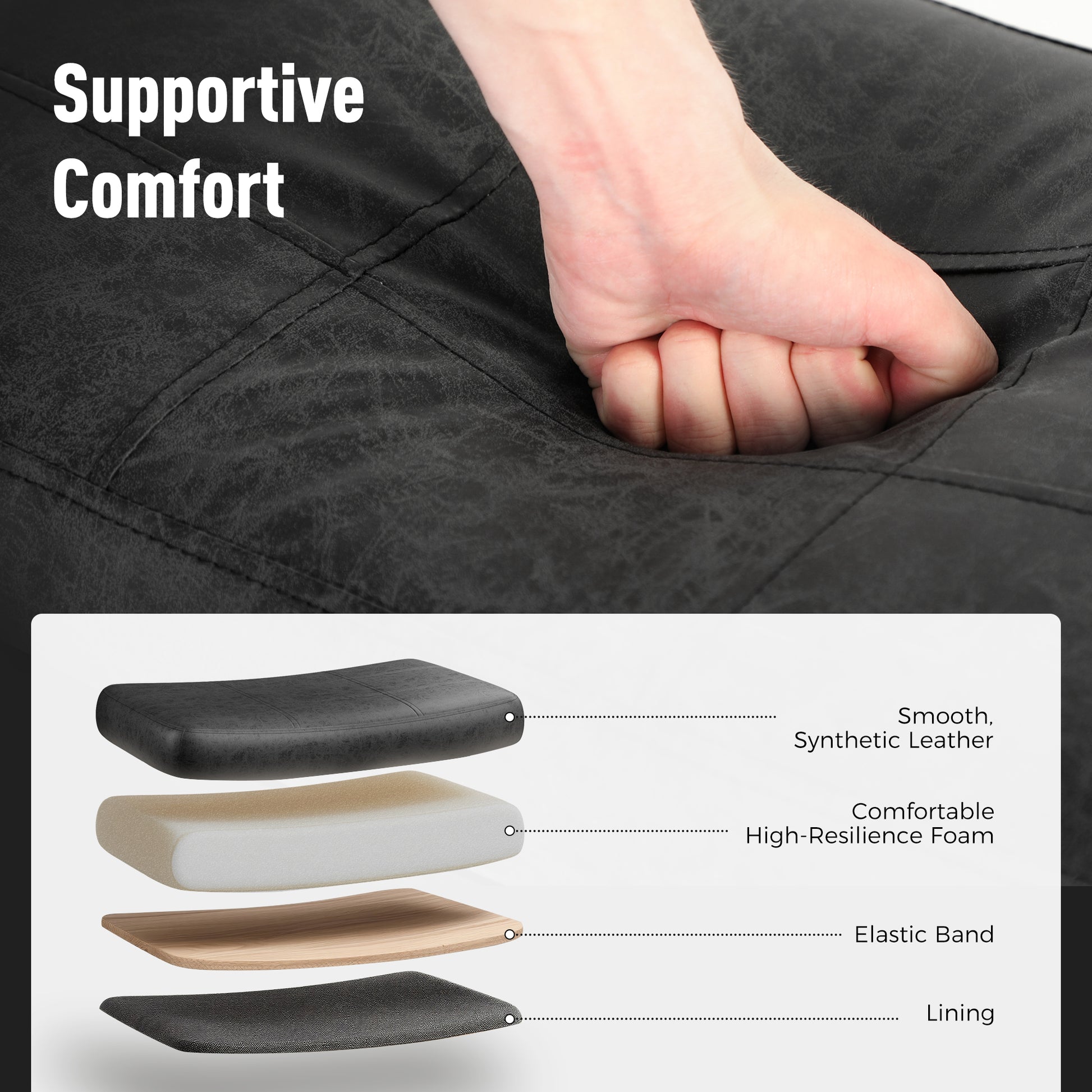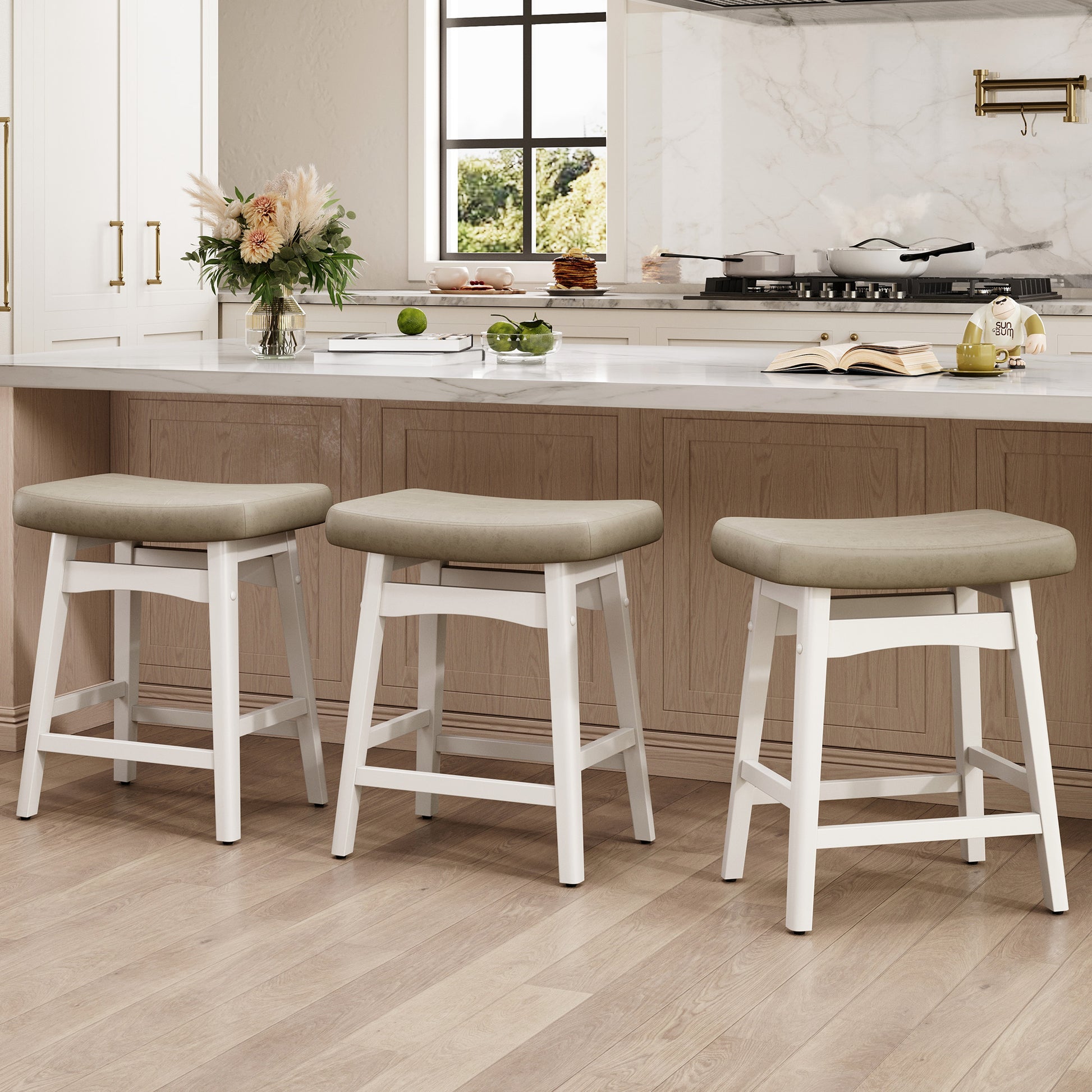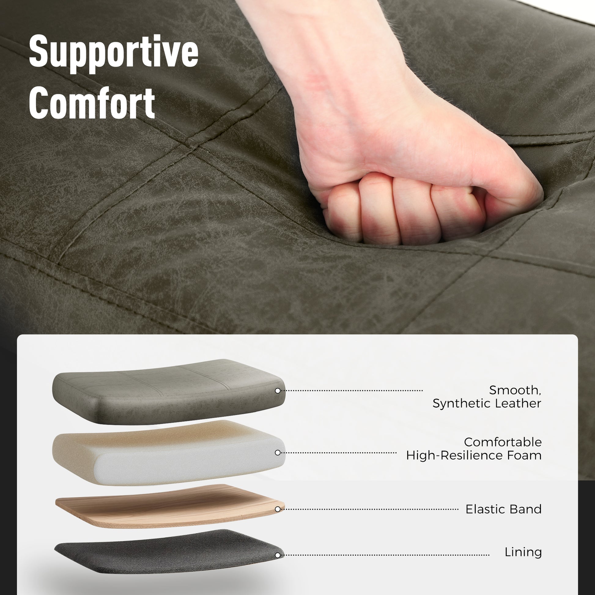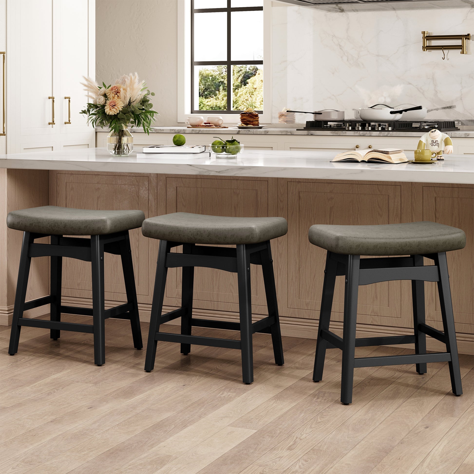 [Captiva Designs] Designed for lasting comfort, the Captiva Designs 24-inch bar stool features a four-layer seat system—synthetic leather, high-resilience foam, elastic band, and reinforced lining—for optimal support. Its sturdy solid wood frame ensures durability, while the contoured seat promotes ergonomic posture to reduce fatigue. The integrated footrest and non-slip pads add thoughtful convenience, protecting floors and enhancing stability. With compact dimensions, it fits standard 34–38" counters perfectly. Assembles in just 10 minutes—ready to elevate your kitchen or bar with timeless style and unmatched comfort. The ideal blend of function and elegance for your home.