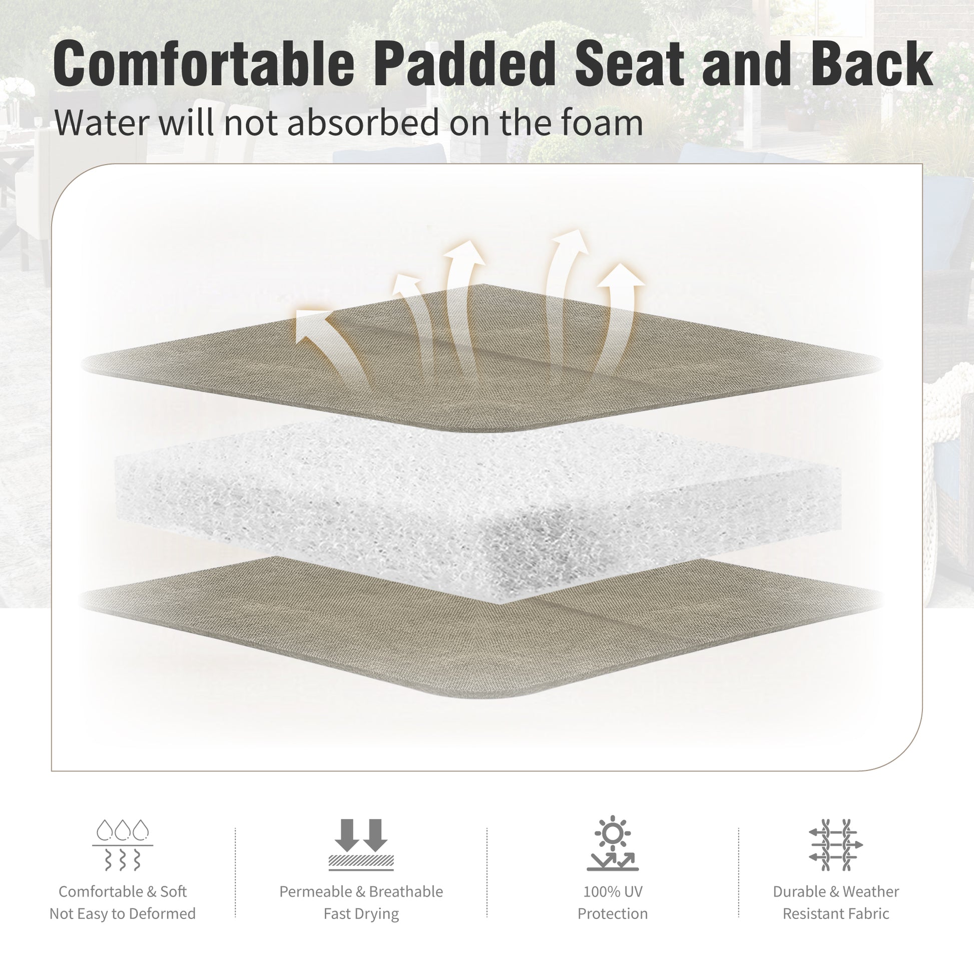 <b>坚固耐用的结构:</b>该套装采用电子涂层和粉末涂层钢框架制成,旨在承受户外条件,确保持久的享受。