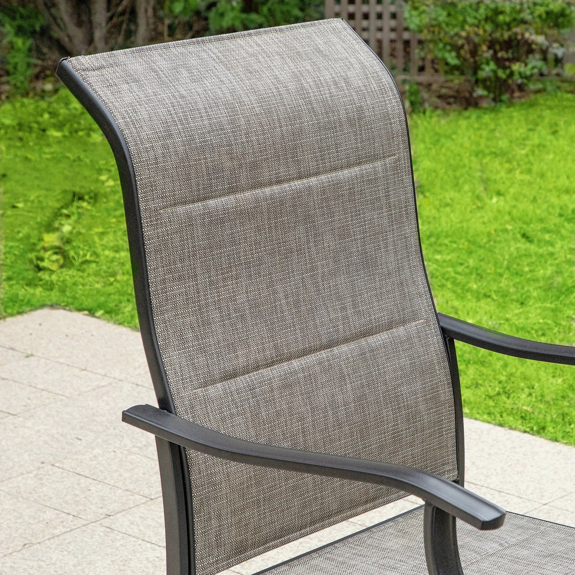 [<b>CAPTIVA DESIGNS</b>]使用我们的户外餐椅升级您的户外用餐体验。蓝色软垫吊椅可 360 度旋转,更加方便舒适。U 形扶手和坚固的钢架提供稳定性,防锈性能确保长久使用。 这些椅子采用耐用的 E 涂层和粉末涂层钢制成,配有坚固的交叉腿连接器,可承受户外条件以实现持久的享受。