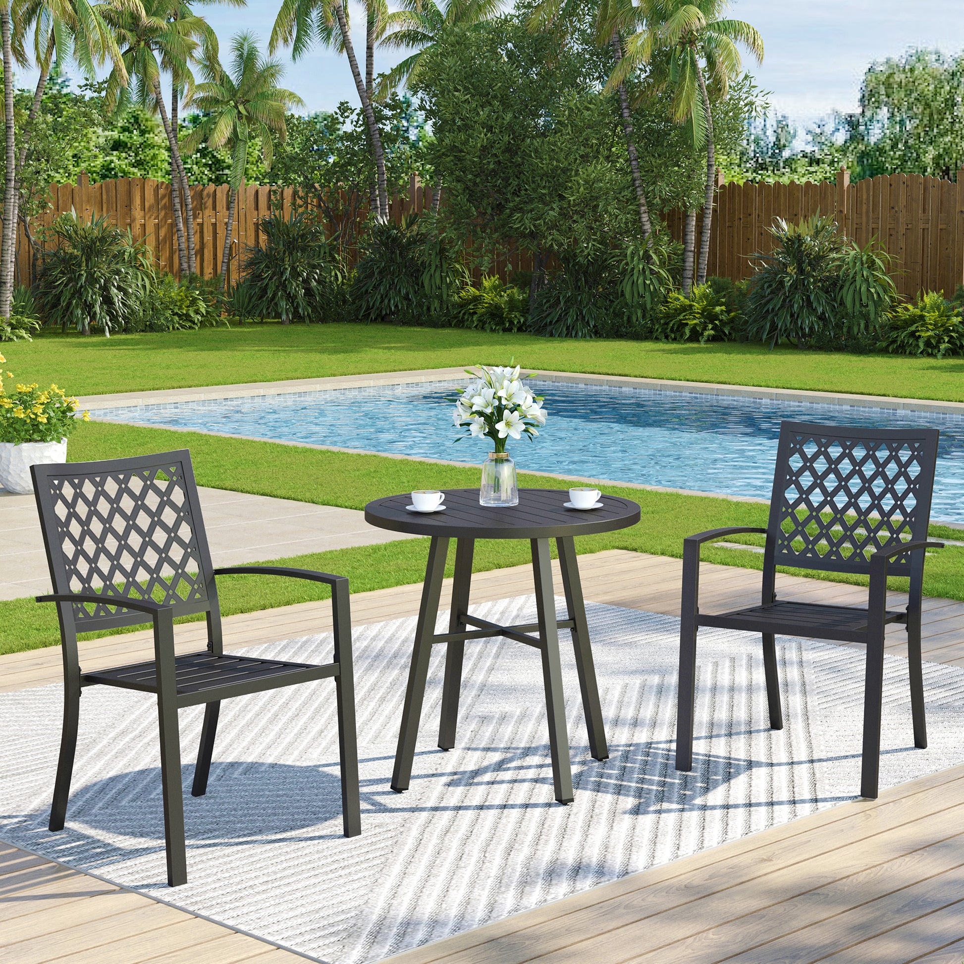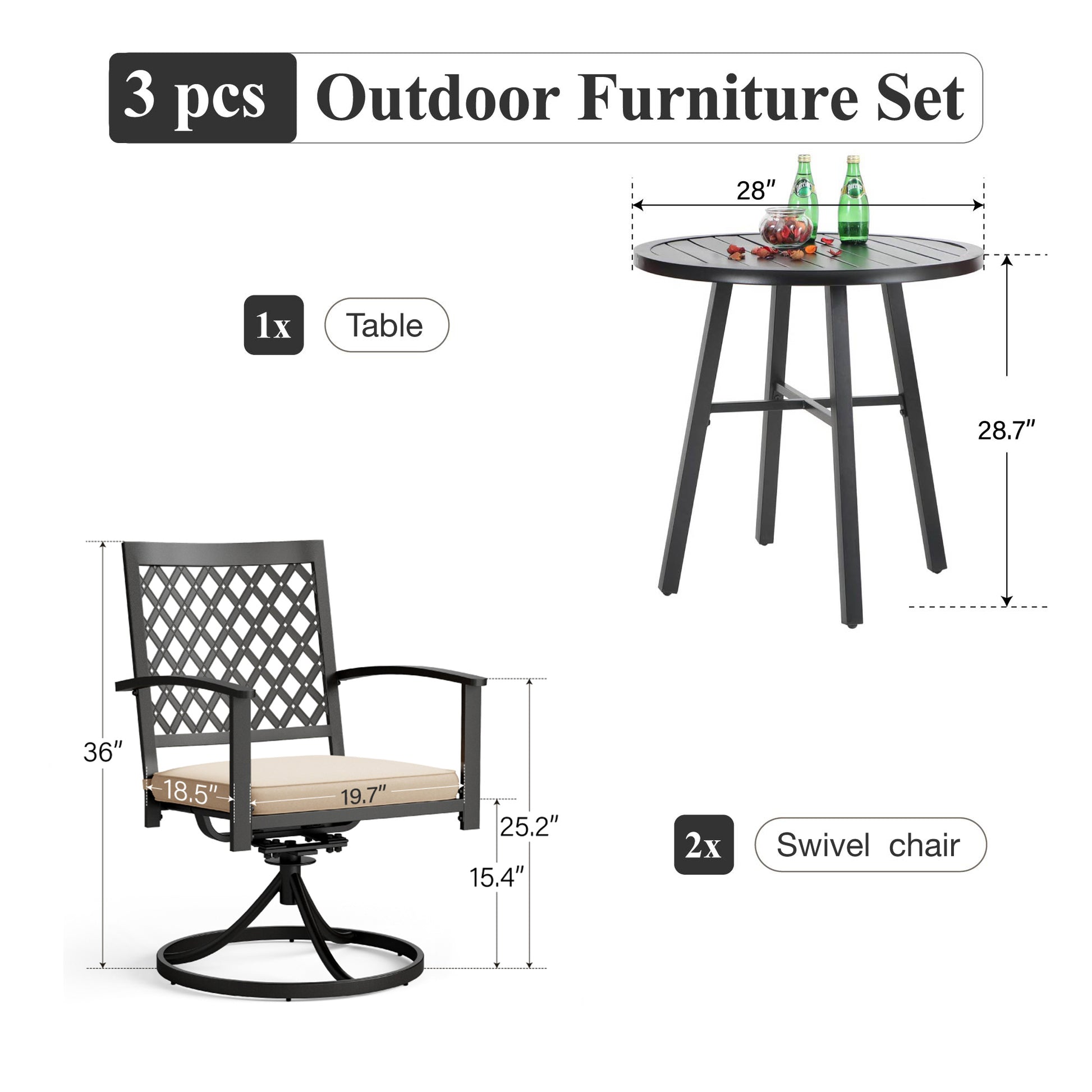 - Elevate your patio aesthetics and create a welcoming atmosphere that suits both casual and formal occasions. Choose this set to combine practical design with timeless style, ensuring enjoyment through every season.
