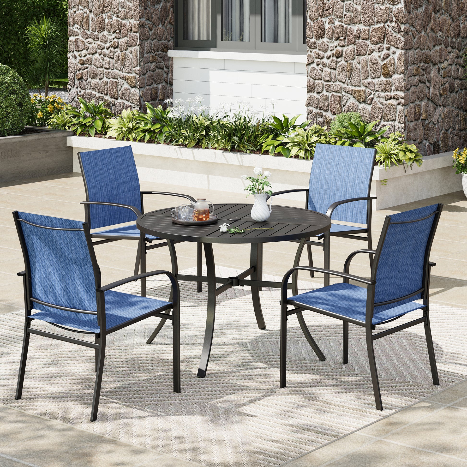 Captiva Designs 5 件套露台餐桌椅套装,配有带顶板的方桌和蓝色吊带固定椅