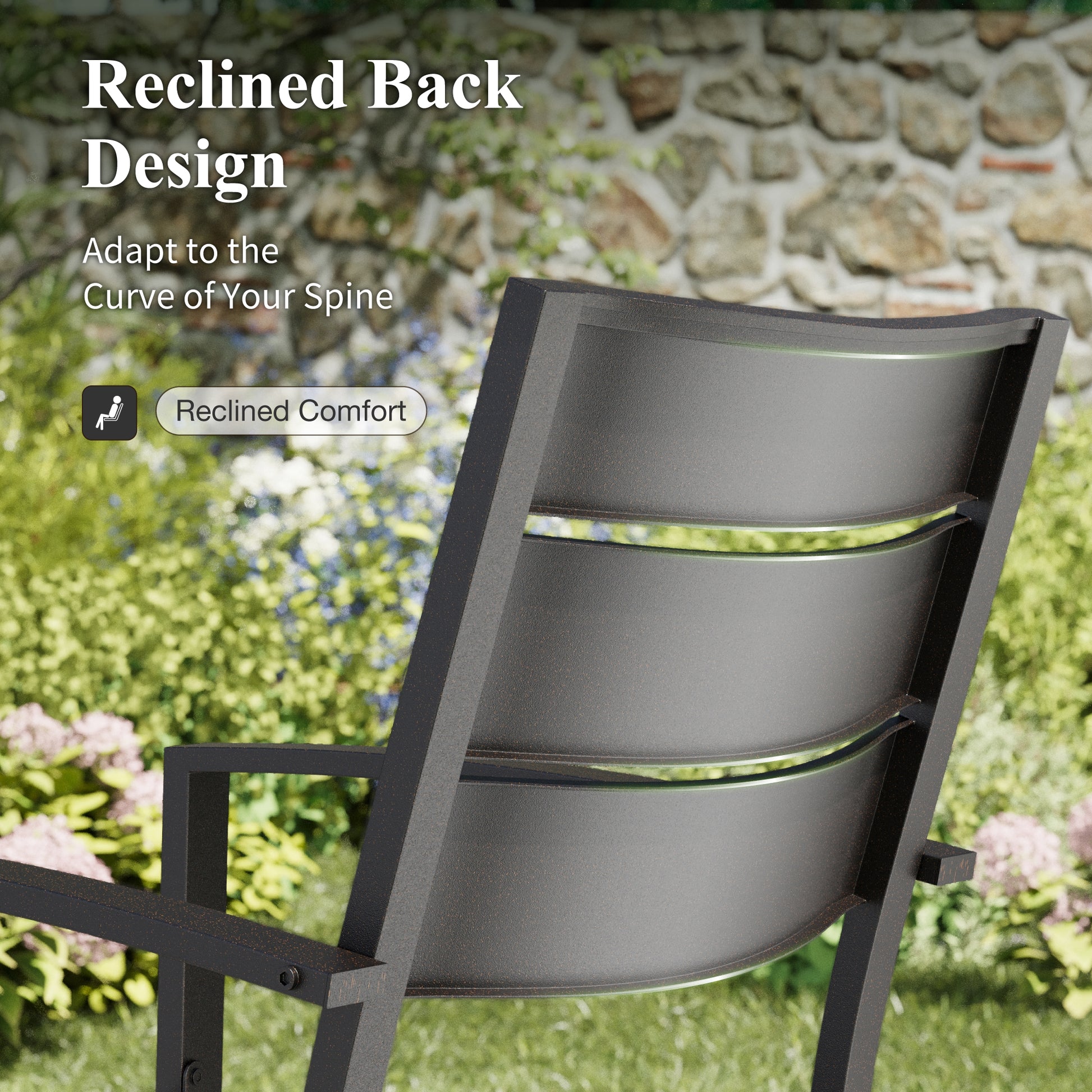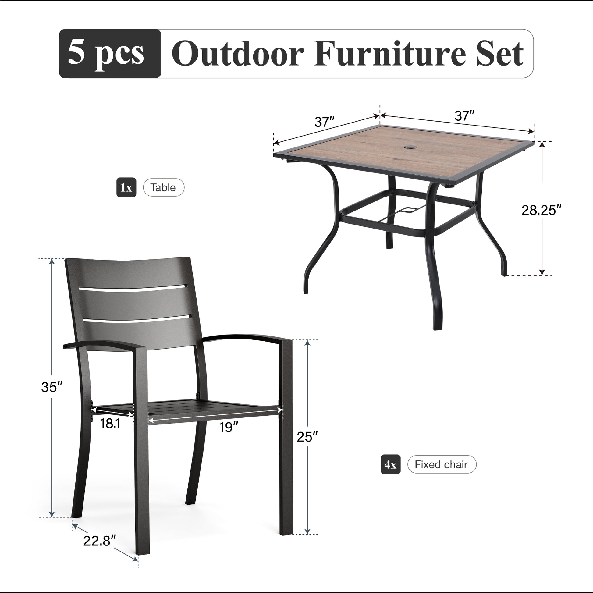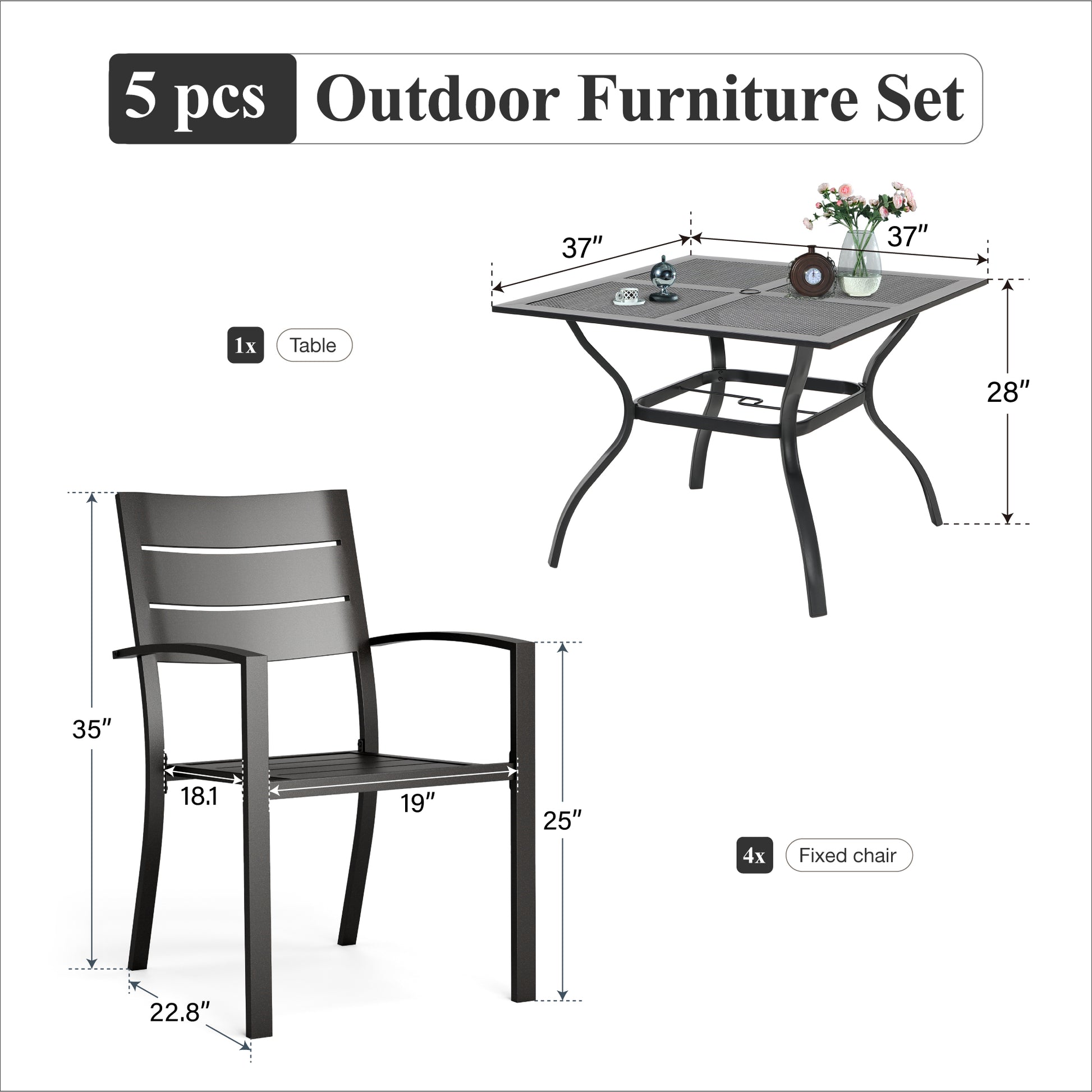 [CAPTIVA DESIGNS] Elevate your patio with the stylish 5-piece Captiva Designs dining set, featuring a durable steel table and four chairs with distinctive striped backs. Its robust, weather-resistant construction ensures long-lasting performance through all seasons while maintaining a refined aesthetic. Versatile for both intimate moments and lively gatherings, this set delivers enduring style and functionality for any outdoor space.