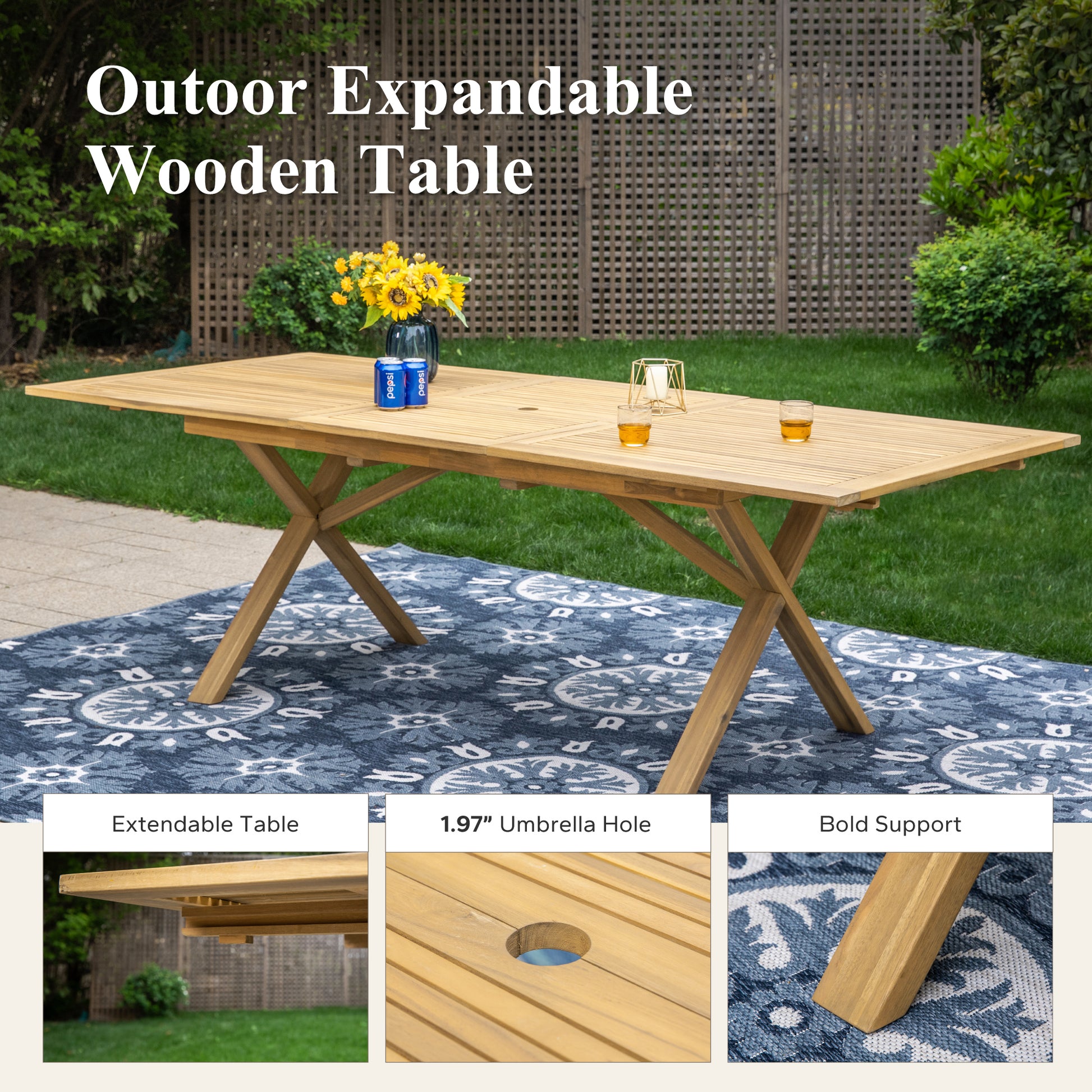 Captiva Designs 7 件套相思木露台家具套装是任何户外空间的绝佳补充。配有一张实心相思木餐桌,可扩展至 6-8 人用餐,并配有伞孔以增加便利性。配套的椅子坚固耐用,可承受高达 300 磅的重量,配有可拆卸的坐垫,以增加舒适度。使用这款设计精美的套装享受夏日用餐和派对。