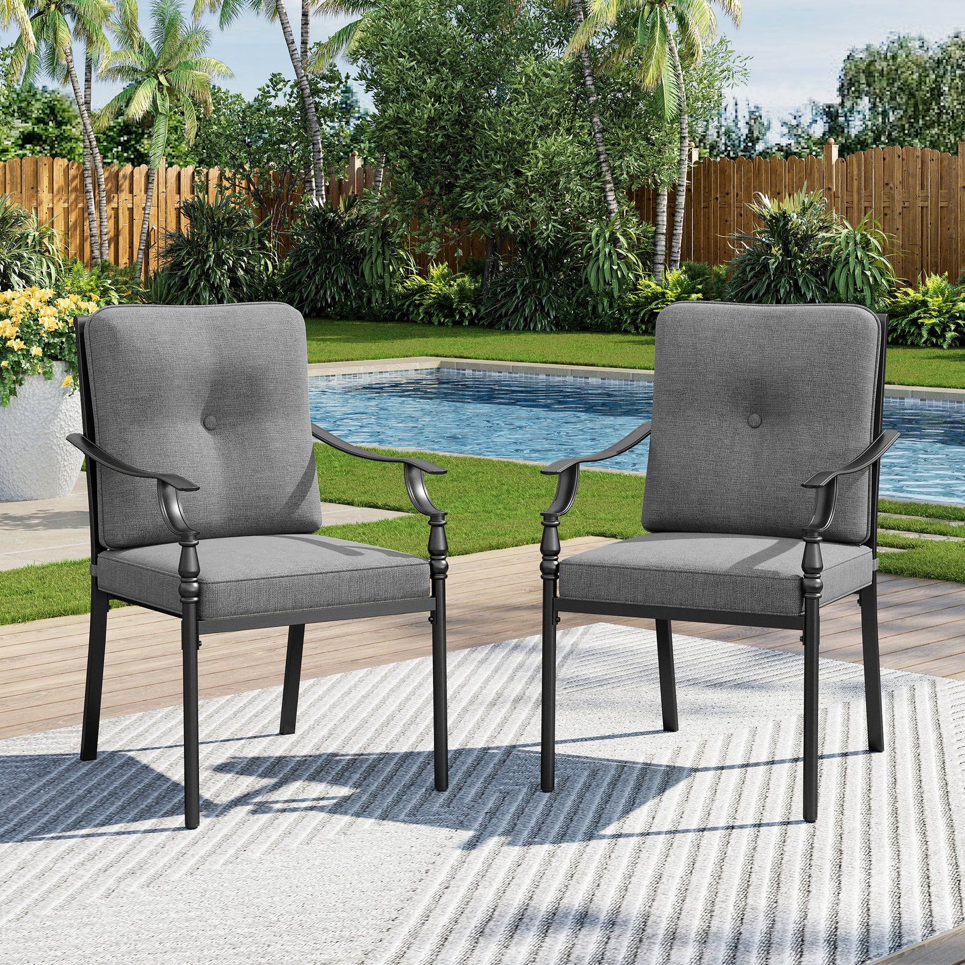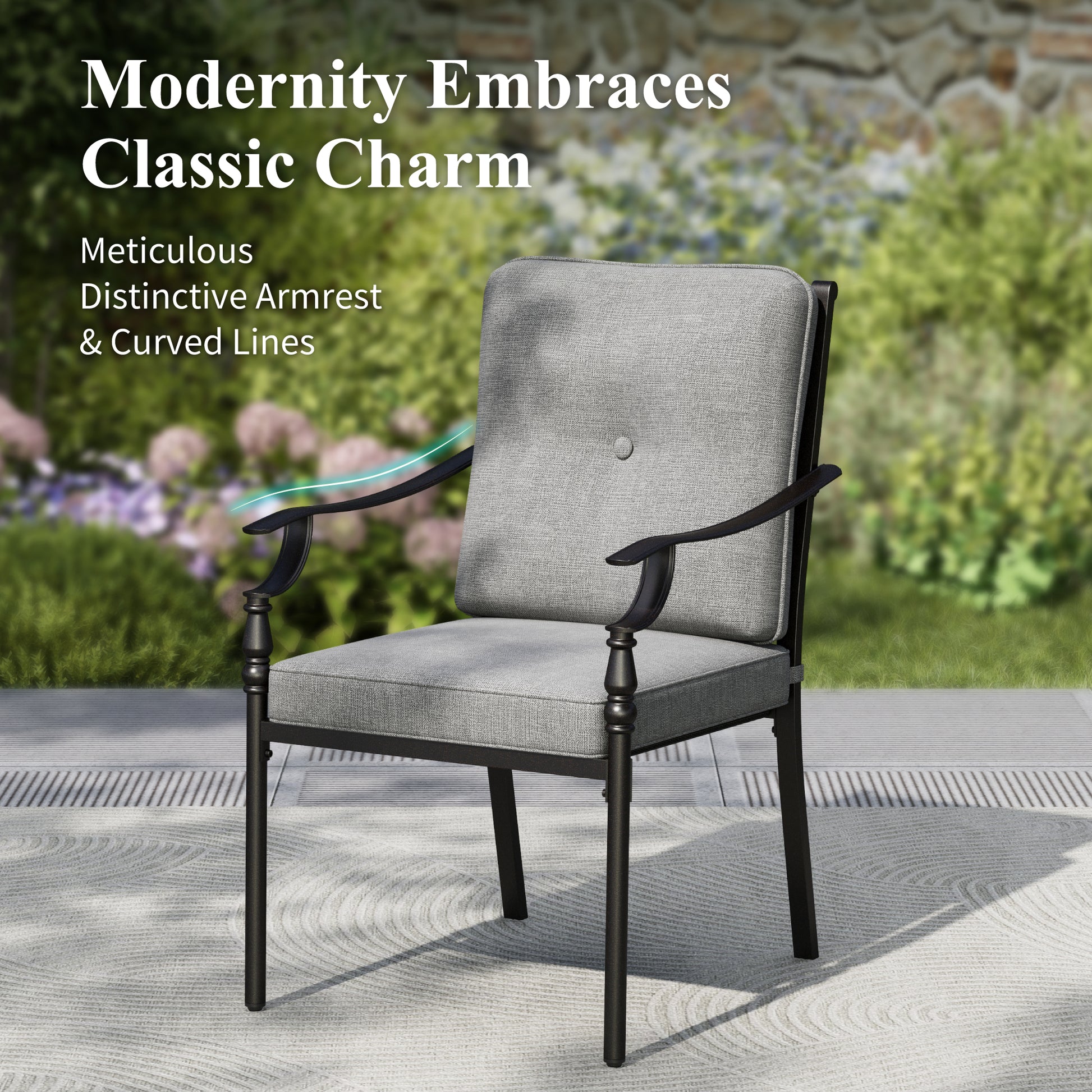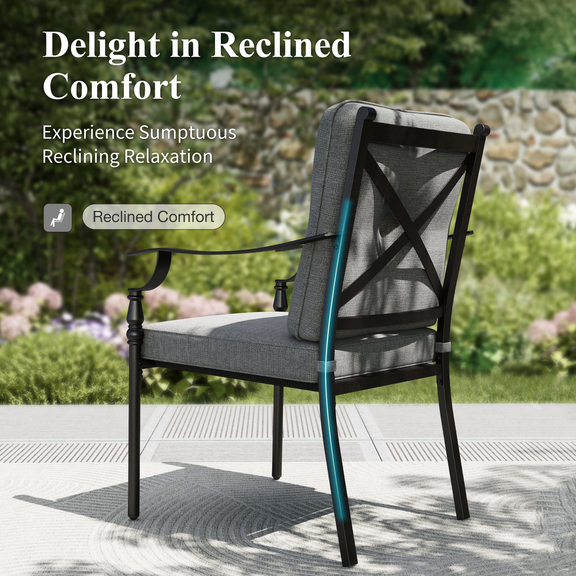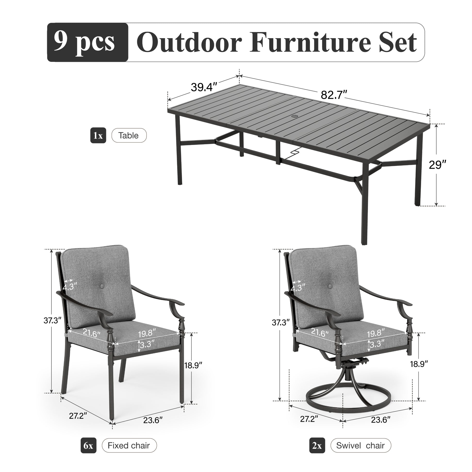 [CAPTIVA DESIGNS] Elevate your outdoor entertaining with the Captiva Designs Patio Dining Set, engineered for durability and refined style. This comprehensive collection features a spacious slat-top rectangle table paired with sturdy metal chairs, each outfitted with premium seat and back cushions for extended comfort during meals and gatherings.