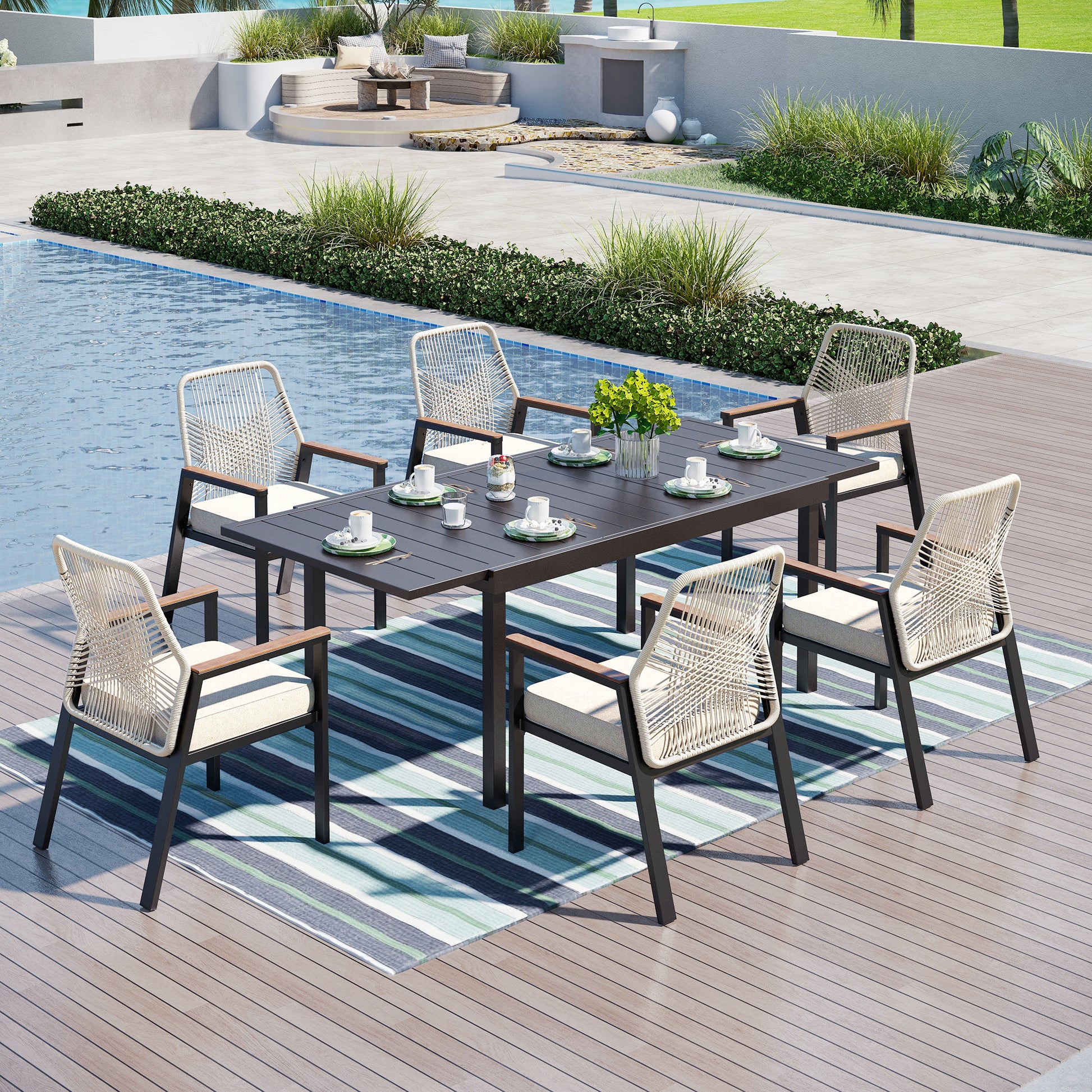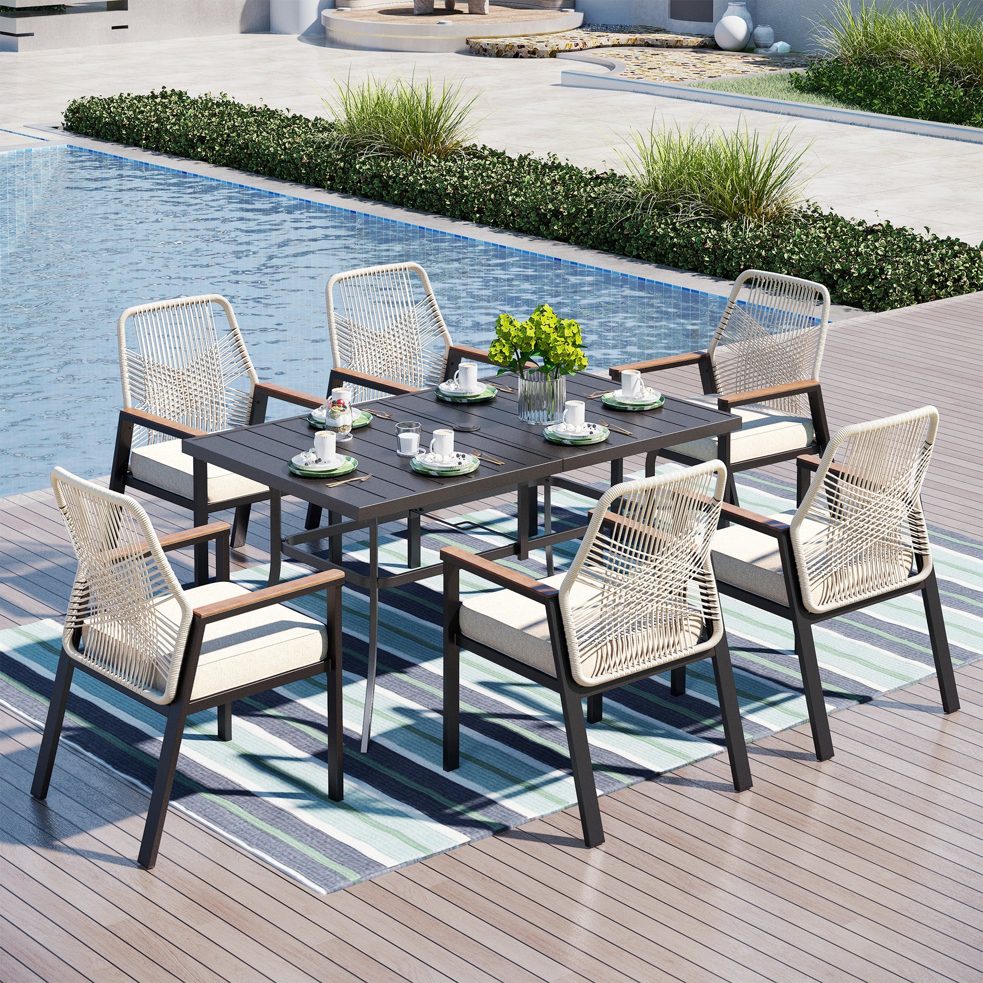 Captiva Designs 7 件套露台餐厅板顶可调节钢制长方形桌子和米色藤椅