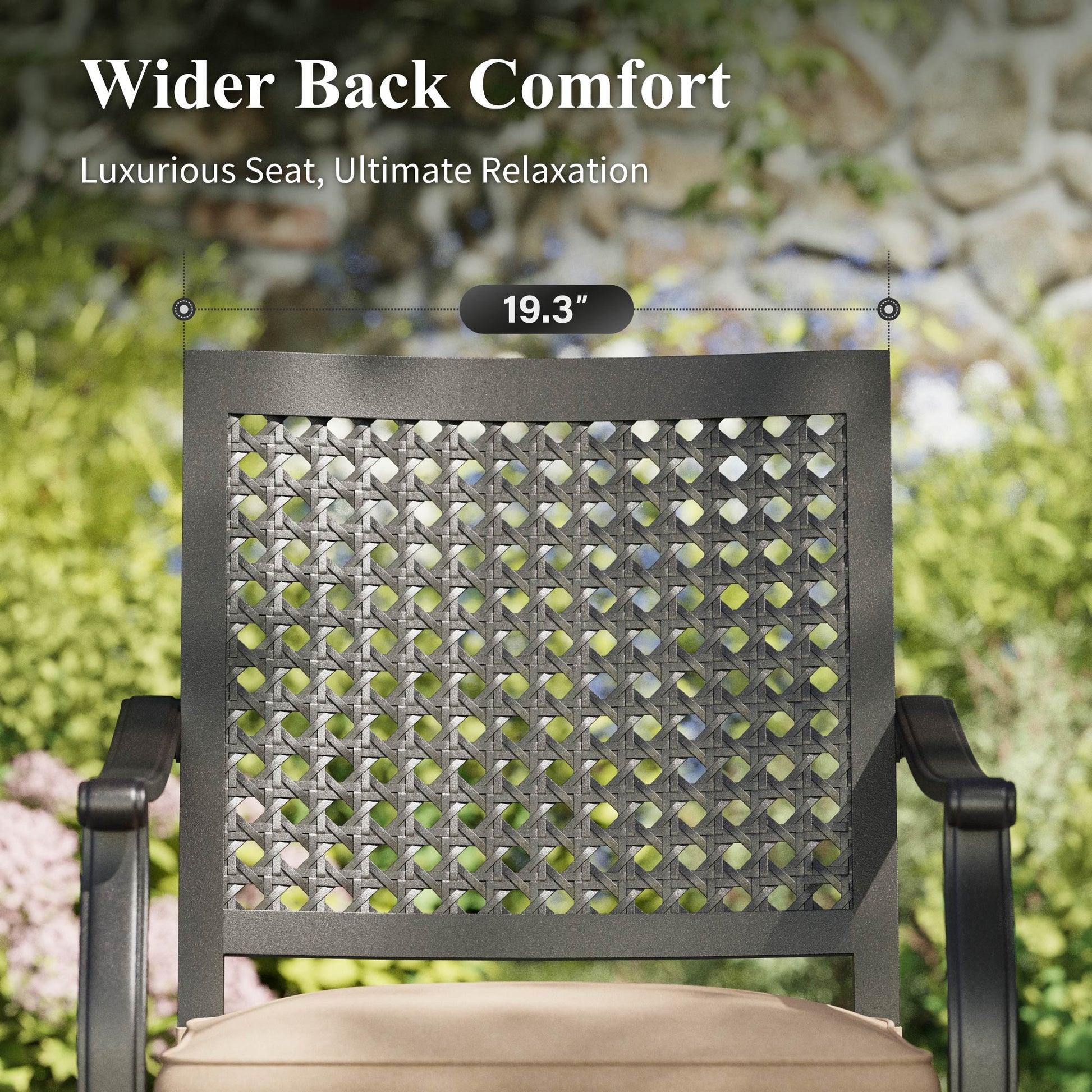 <b>完整的 7 件餐具套装:</b>这个多功能套装包括一张宽敞的餐桌和六把舒适的扶手椅,为您的户外聚会提供充足的座位。