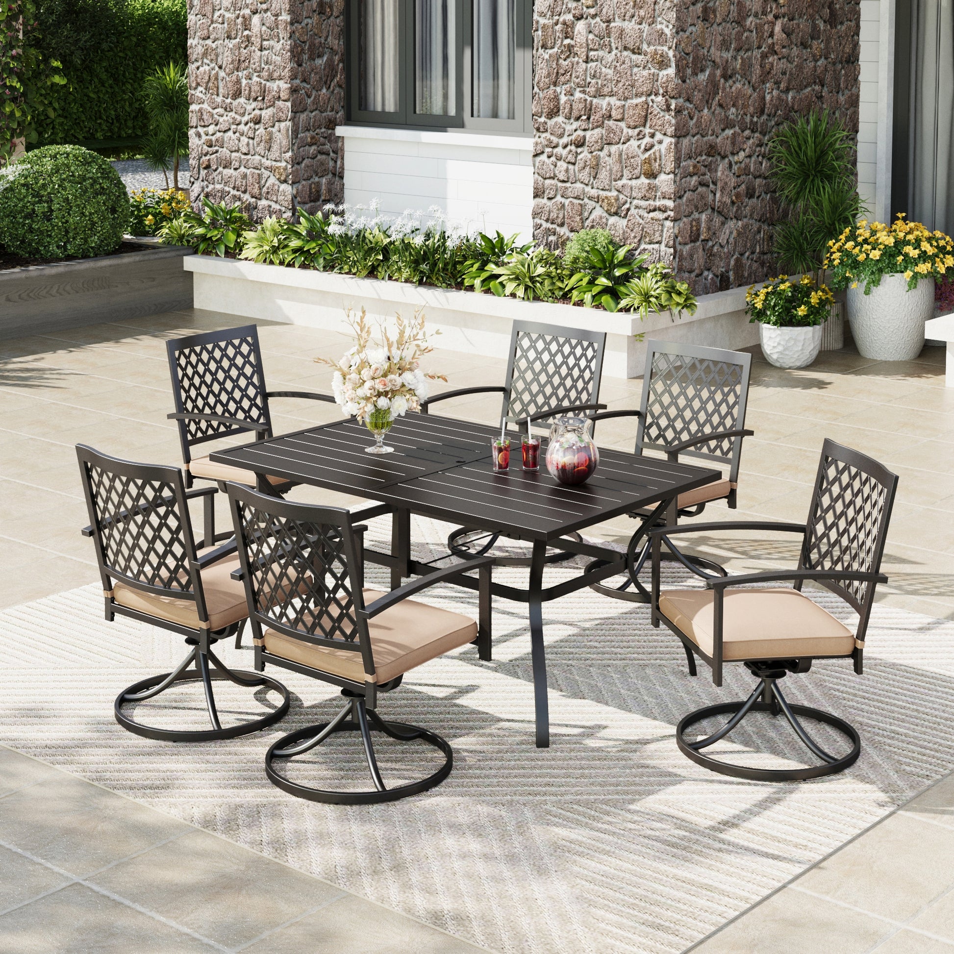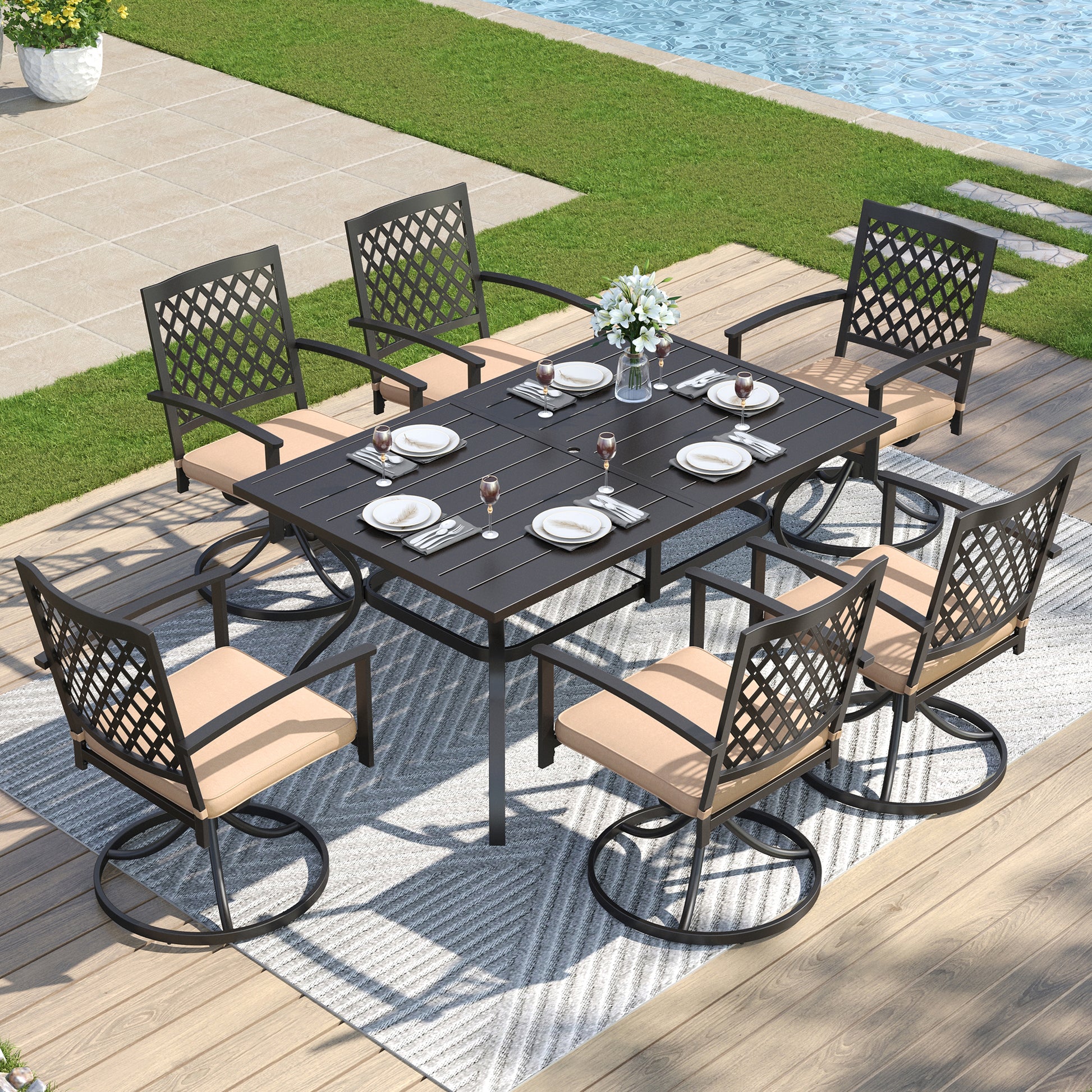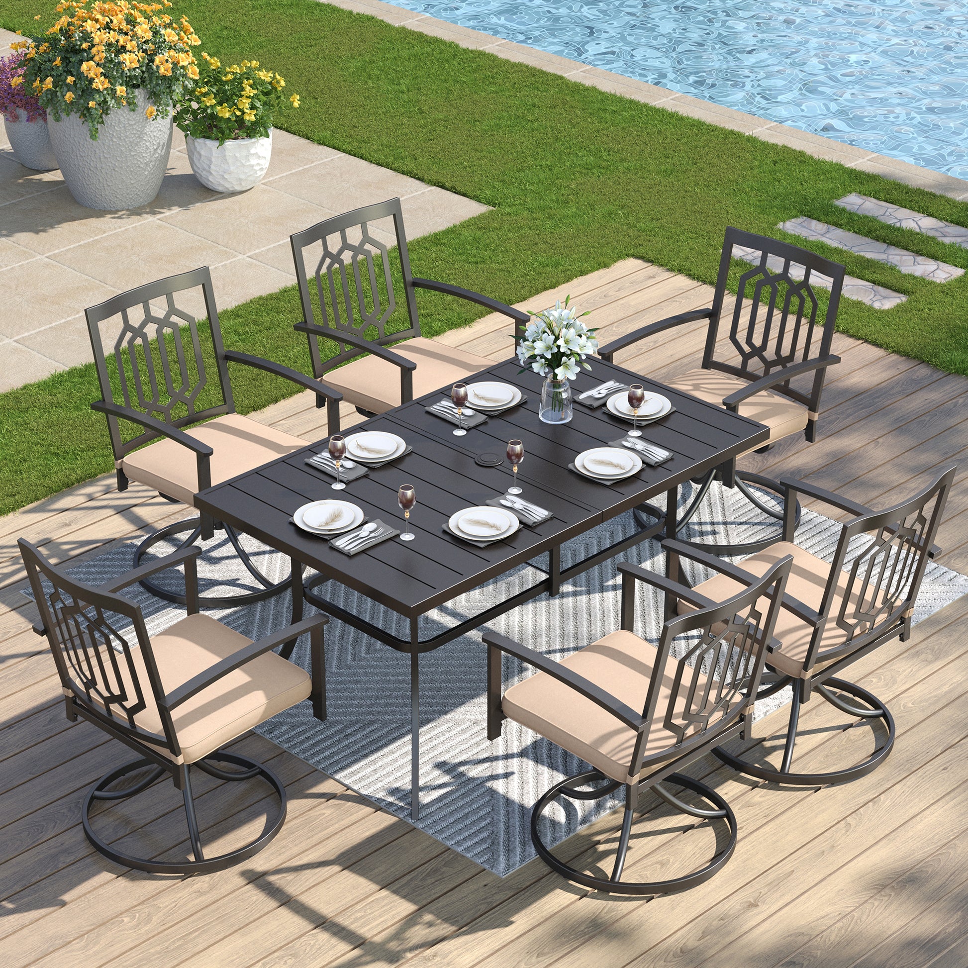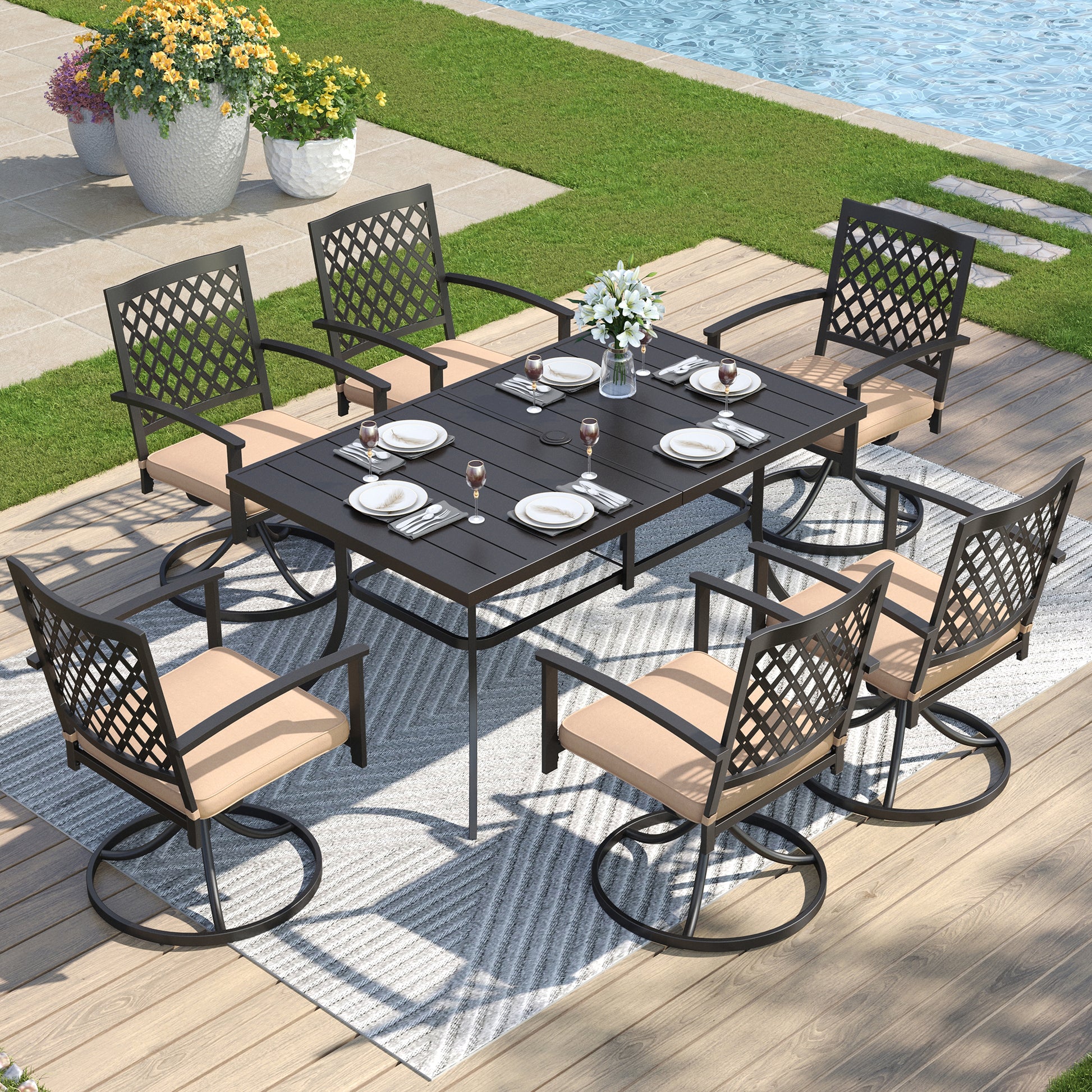 Captiva Designs 7 件套露台餐厅板顶矩形桌子和旋转椅,带靶心图案